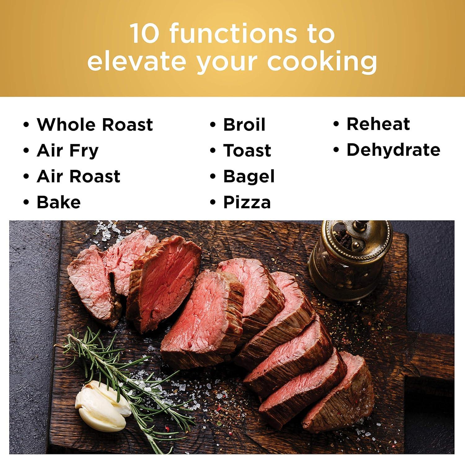 10-IN-1 FUNCTIONALITY: Includes 10 versatile cooking programs: Air Fry, Air Roast, Broil, Bake, Whole Roast, Pizza. Toast, Bagel, Reheat, Dehydrate.