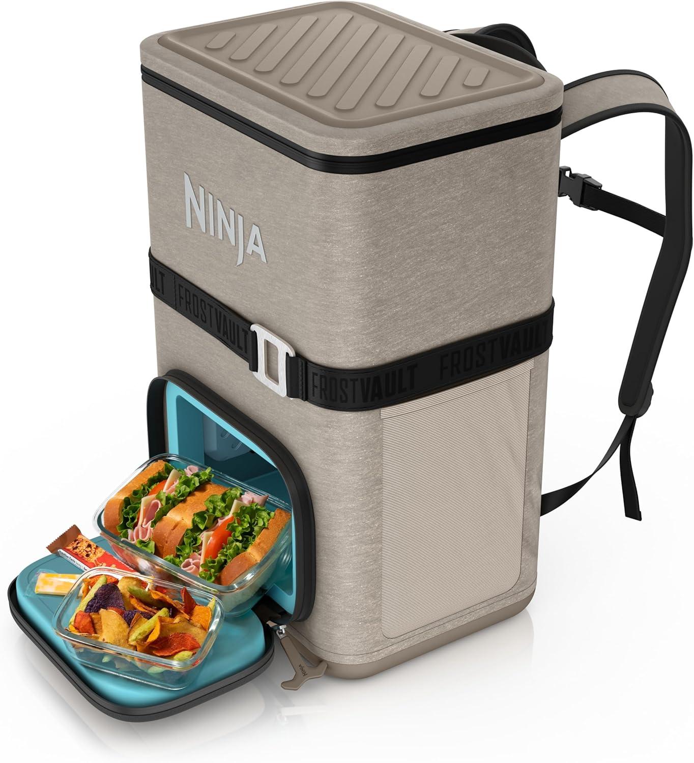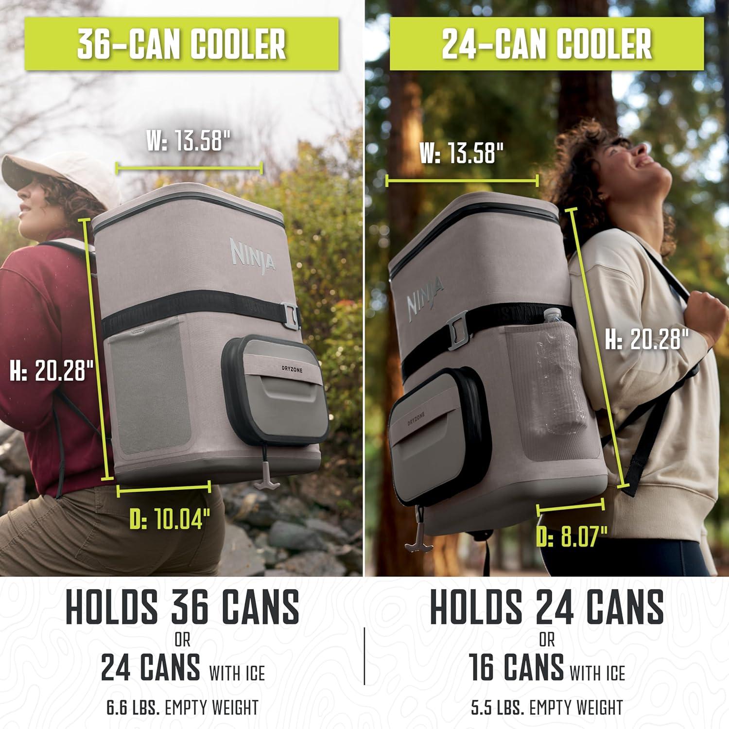 Ninja | Backpack Cooler | FrostVault Go Can Soft Cooler | Leakproof Zipper with Built in Can Opener, 2 Ice Packs & Dry Storage Drawer | for Hiking, Camping & More | 24/36 Can(Beige)