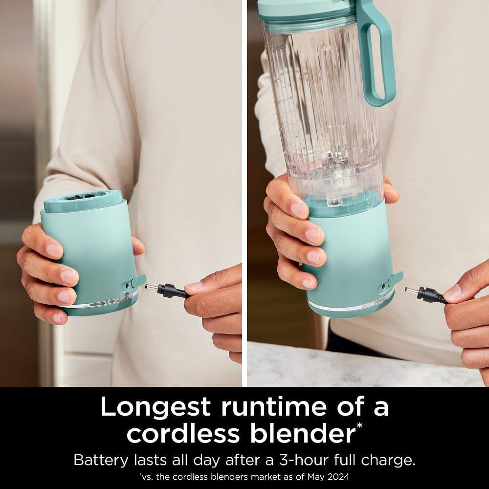 Ninja Blast Max, Portable & Personal Blender + Twist & Go, Smoothie, Blend, Ice Crush, 3 Programs, Cordless, 22 oz removable Vessel, Dishwasher Safe, Leakproof, Grey, BC251GY(Sea Glass)