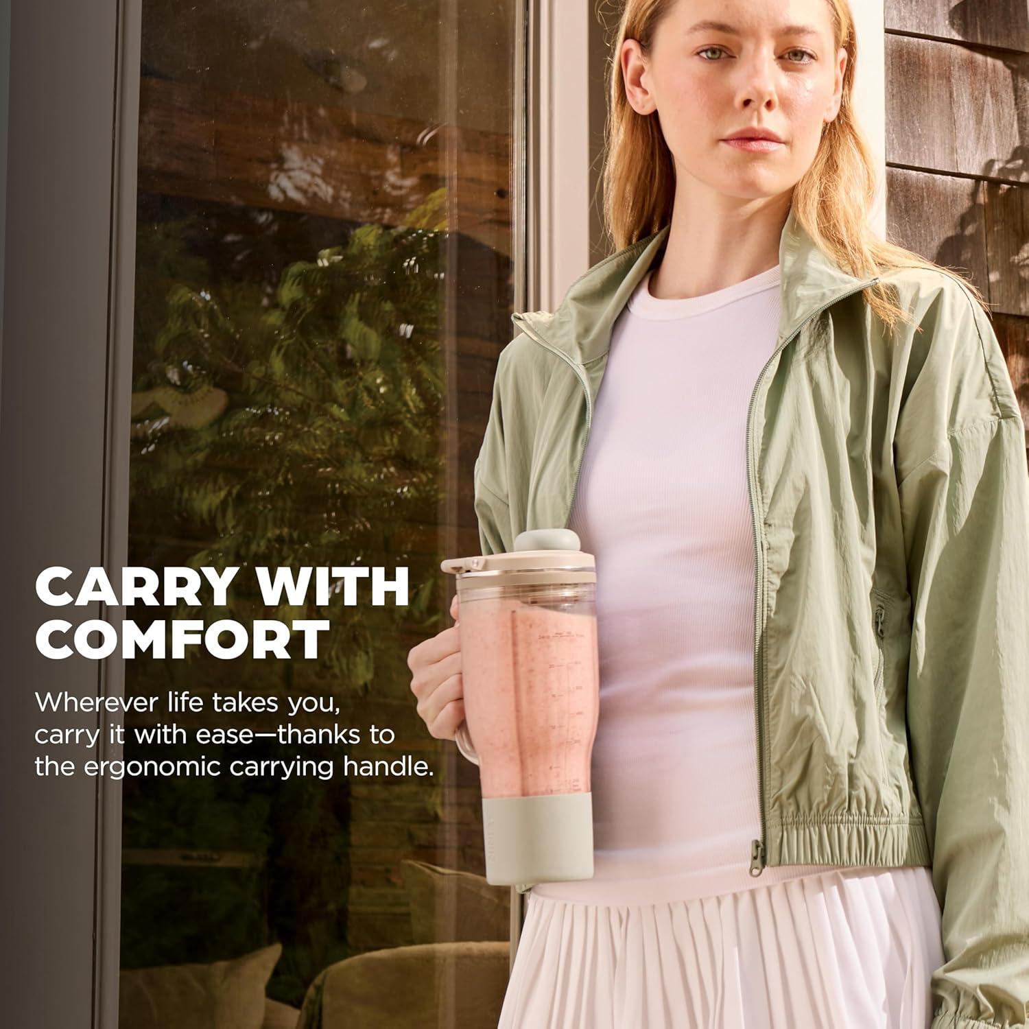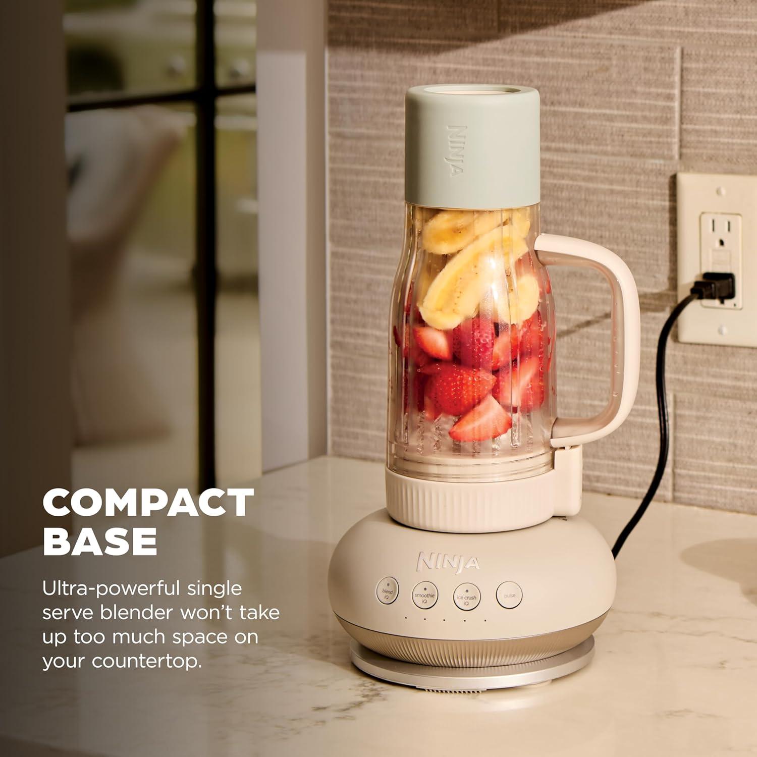 COMPACT BASE: Ultra-powerful single serve blender sports a modern aesthetic and super space-saving design.