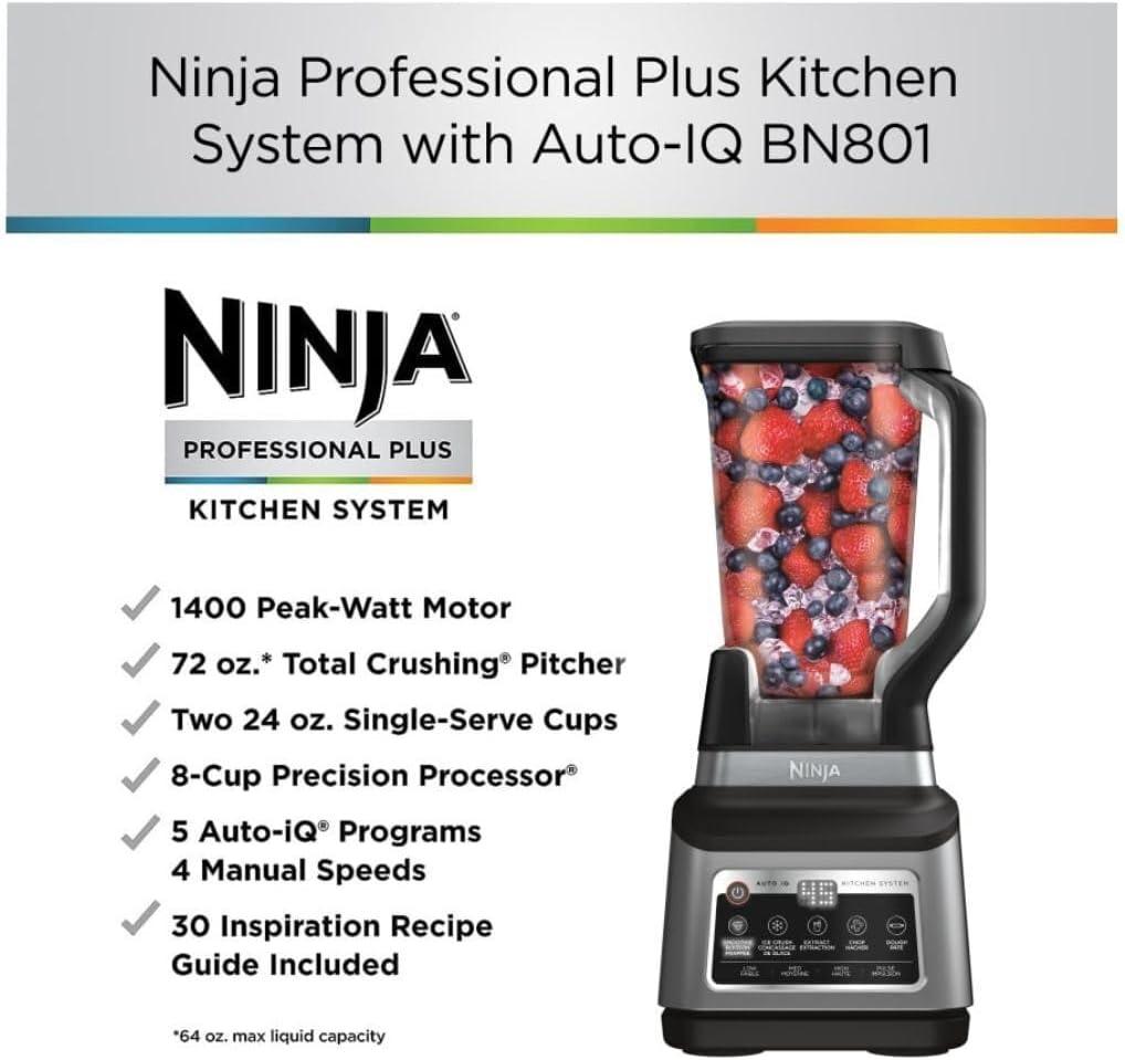 Ninja BN801 Professional Plus Kitchen System with Auto IQ, 1400 Wp – Gray (Renewed)