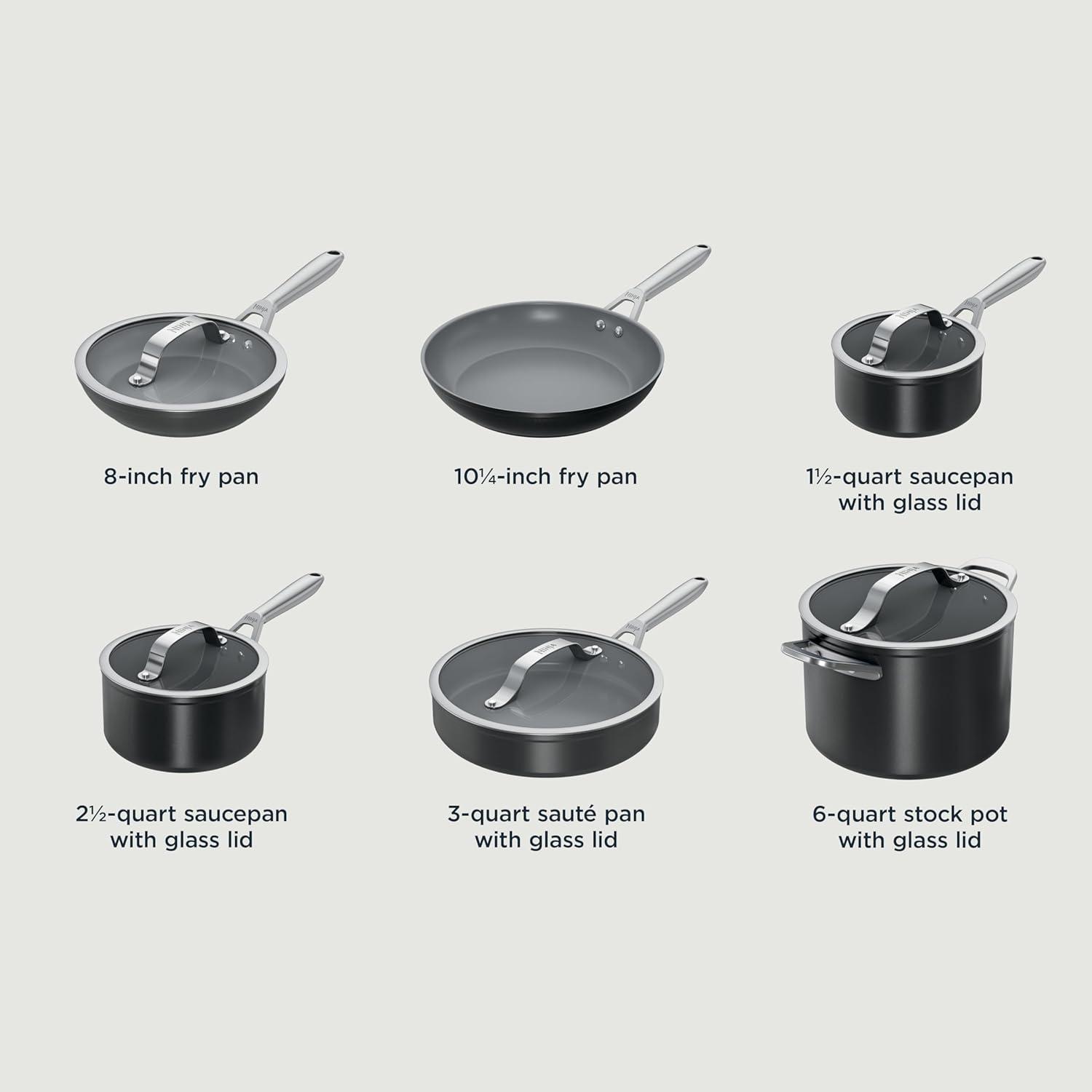 Ninja Ceramic Pro 11-Piece Cookware Set, Non-Stick Pots & Pans Set with Glass Lids, Nontoxic, PTFE Free, Ceramic Coated, Oven Safe, All Stovetops & Induction Compatible, Black, CW39011BK(Black)