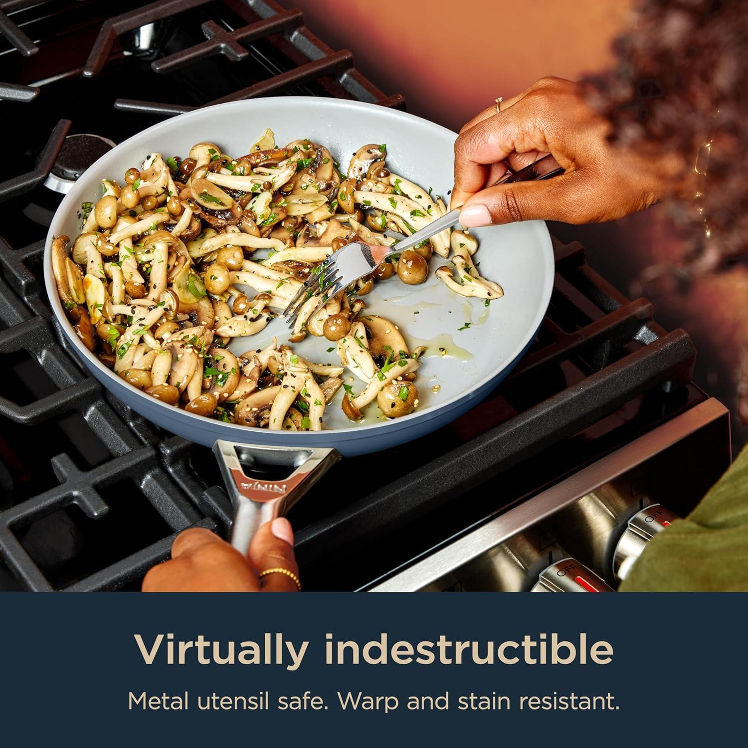 Meet the Ninja Ceramic Pro cookware, Ninja’s most premium ceramic. Our Titanium-infused ceramic coating ensures long-lasting nonstick performance with a 10-year nonstick guarantee. Cook with a peace of mind on a cooking surface made without PTFE, PFOA, or PFAS, no lead or cadmium, and no hard anodization. Unlock unmatched searing performance with a virtually indestructible coating. Cook fearlessly with the cookware that shows up for your life.
