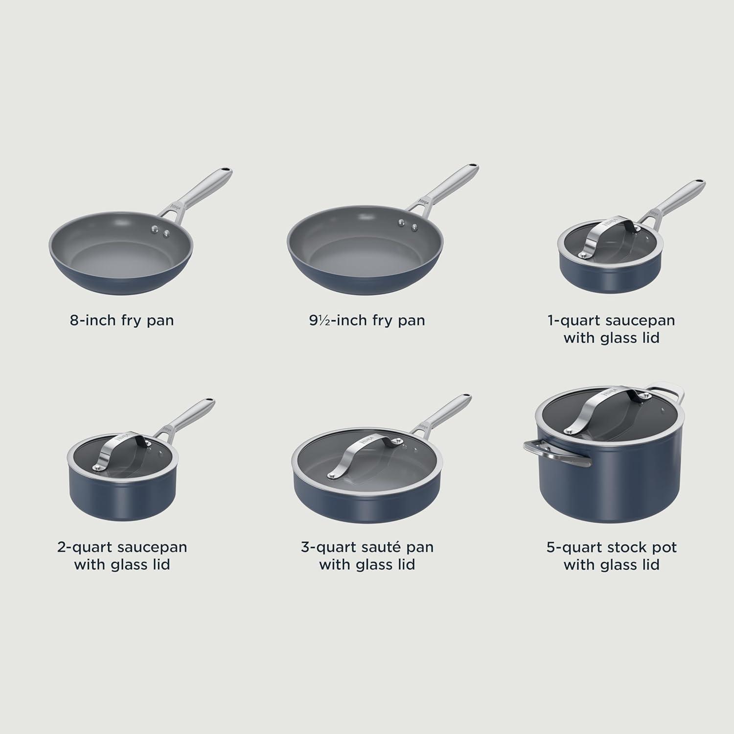 Ninja Ceramic Pro 14-Piece Cookware Set, Non-Stick Pots & Pans Set with Glass Lids, Nontoxic, PTFE Free, Ceramic Coated, Oven Safe, All Stovetops & Induction Compatible, Midnight Blue, CW39014MM(Midnight Blue)