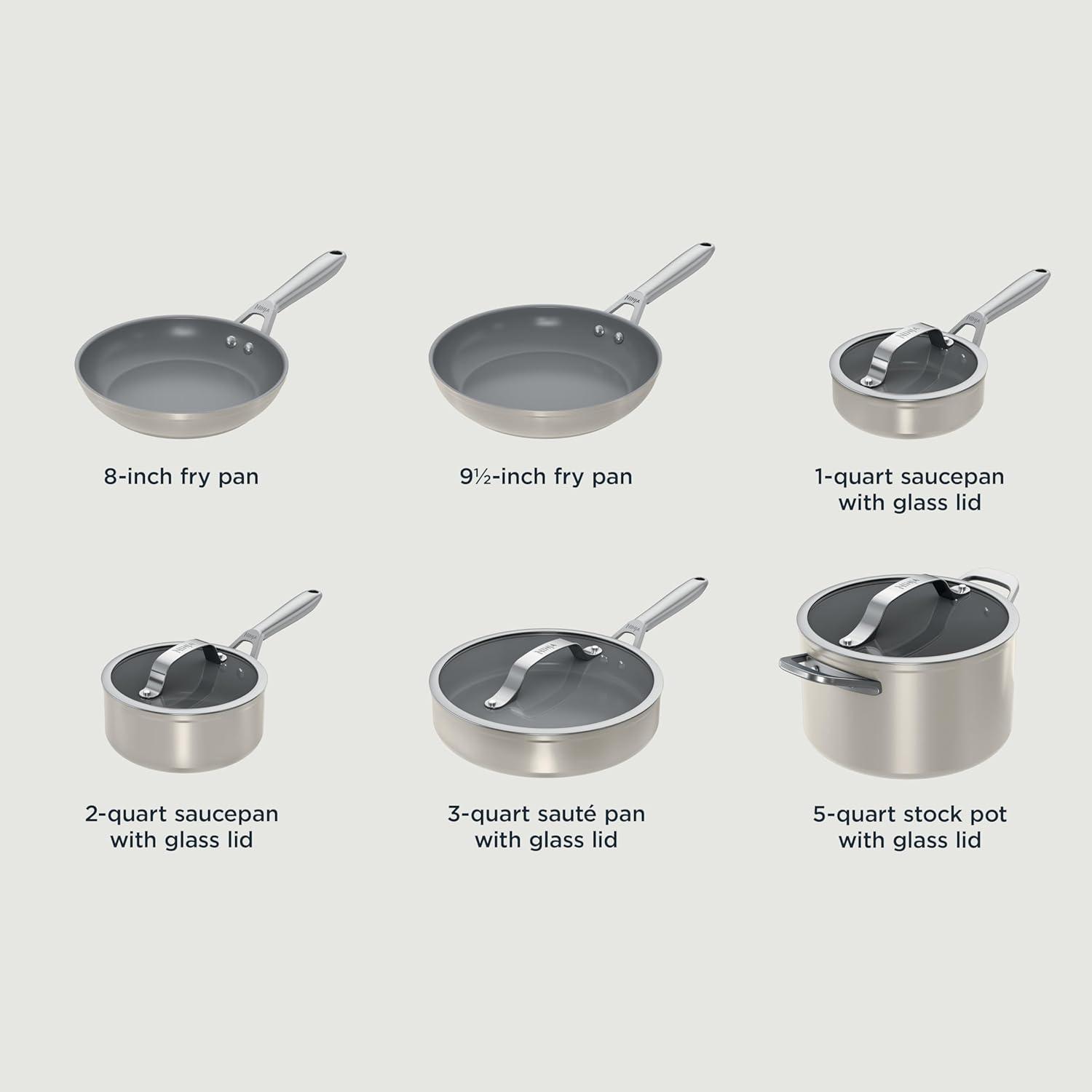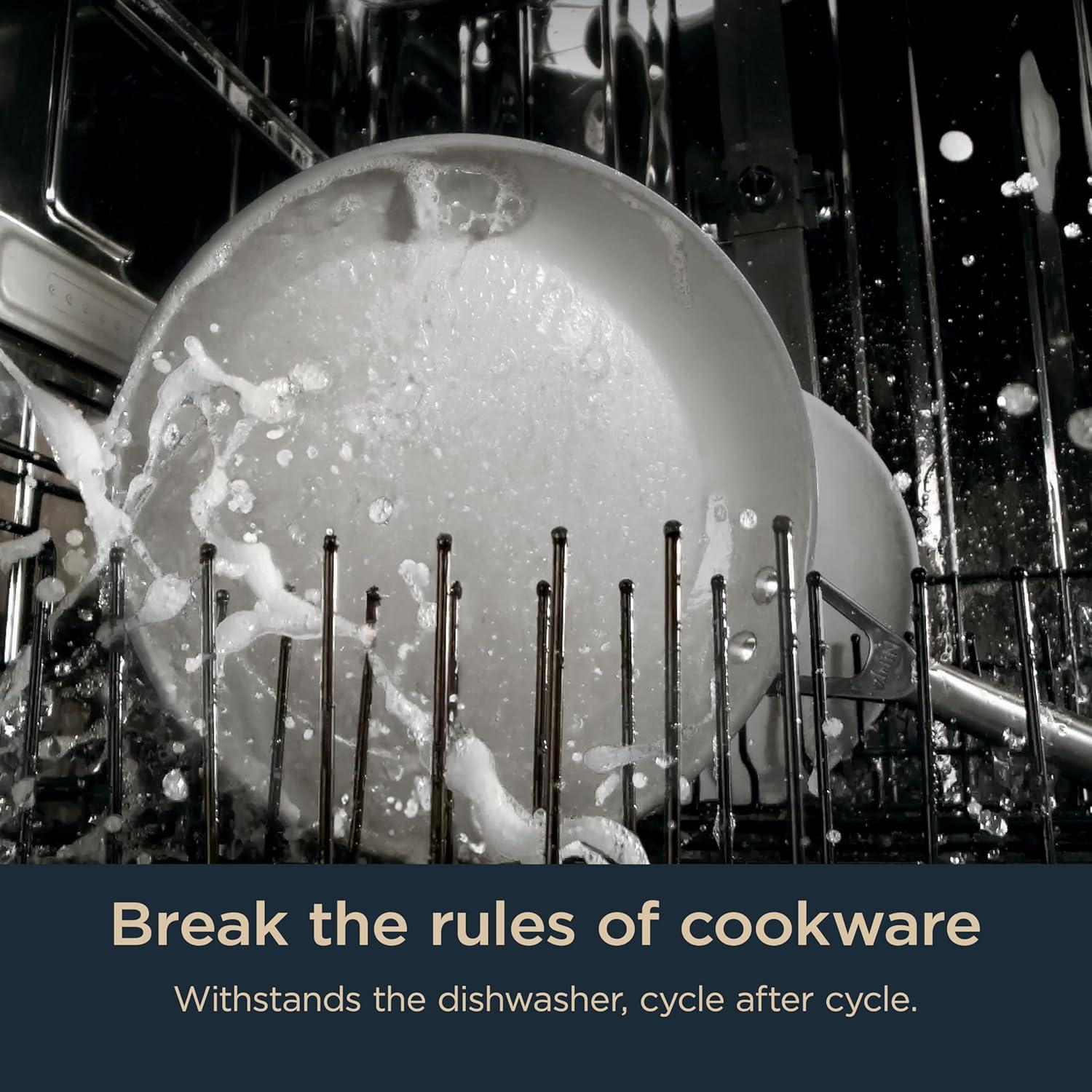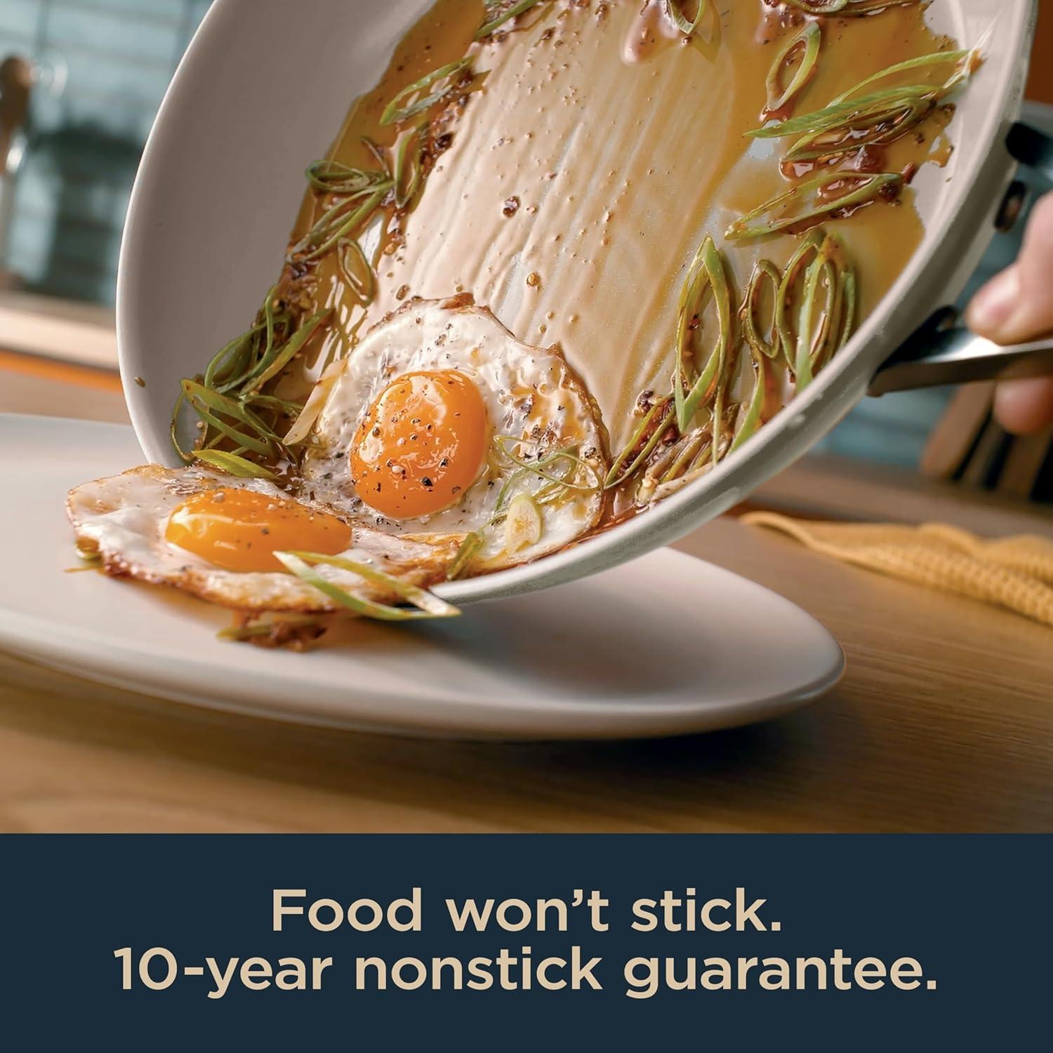 LONG-LASTING NONSTICK PERFORMANCE: Exclusive Titanium-infused ceramic coating. 10-year nonstick guarantee. 3x more scrub resistant* to withstand harsh brushes and sponges *vs Caraway ceramic coated cookware.