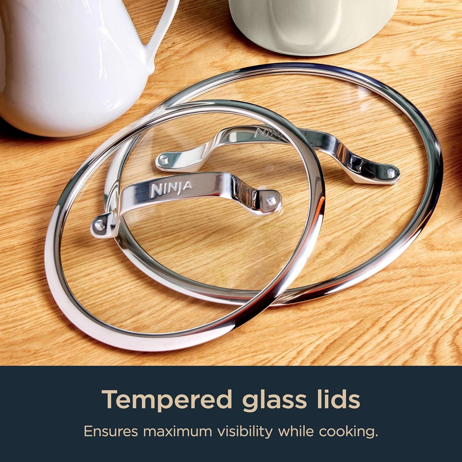 SLEEK LID DESIGN: Flat, fitted tempered glass lids ensure convenient storage and maximum visibility while cooking.