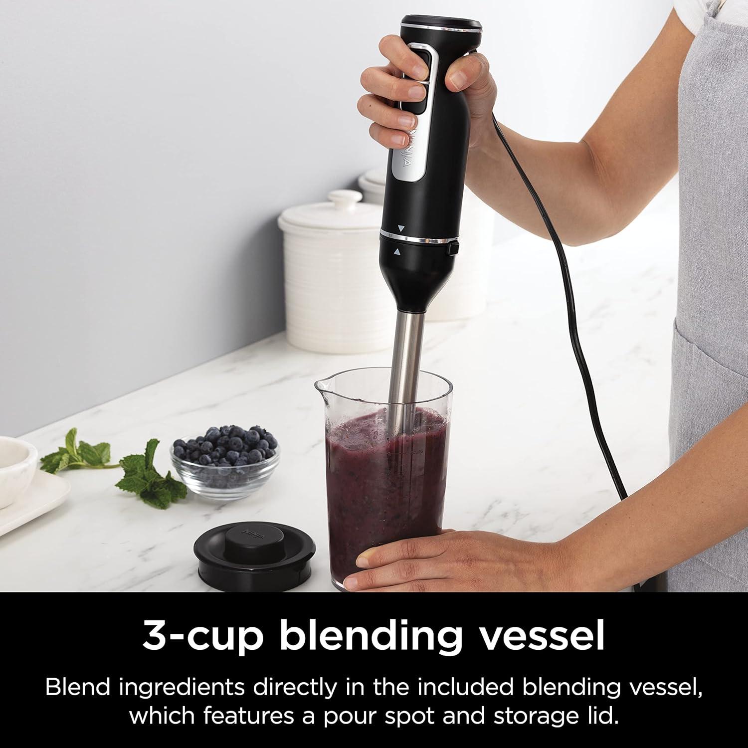 Ninja CI101 Foodi Power Mixer System, 750-Peak-Watt Immersion Blender and Hand Mixer, EasyGlide Beaters, Whisk, 3-Cup Blending Vessel, Black (Renewed)
