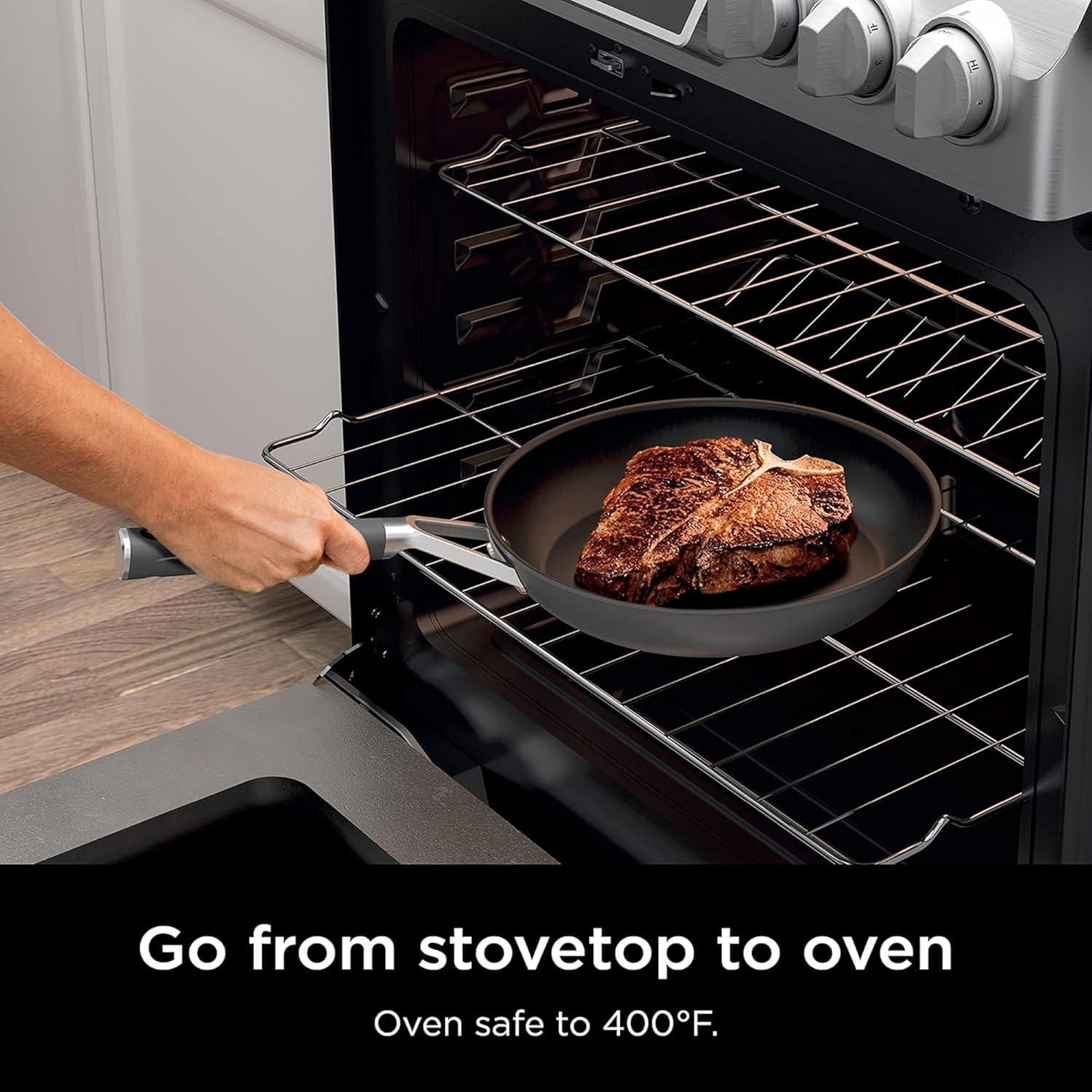 OVEN SAFE: Easily go from stovetop to oven to finish cooking meats, brown toppings, or bake like you can in cast iron. Lids, handles and nonstick coating are all oven safe up to 500°F.