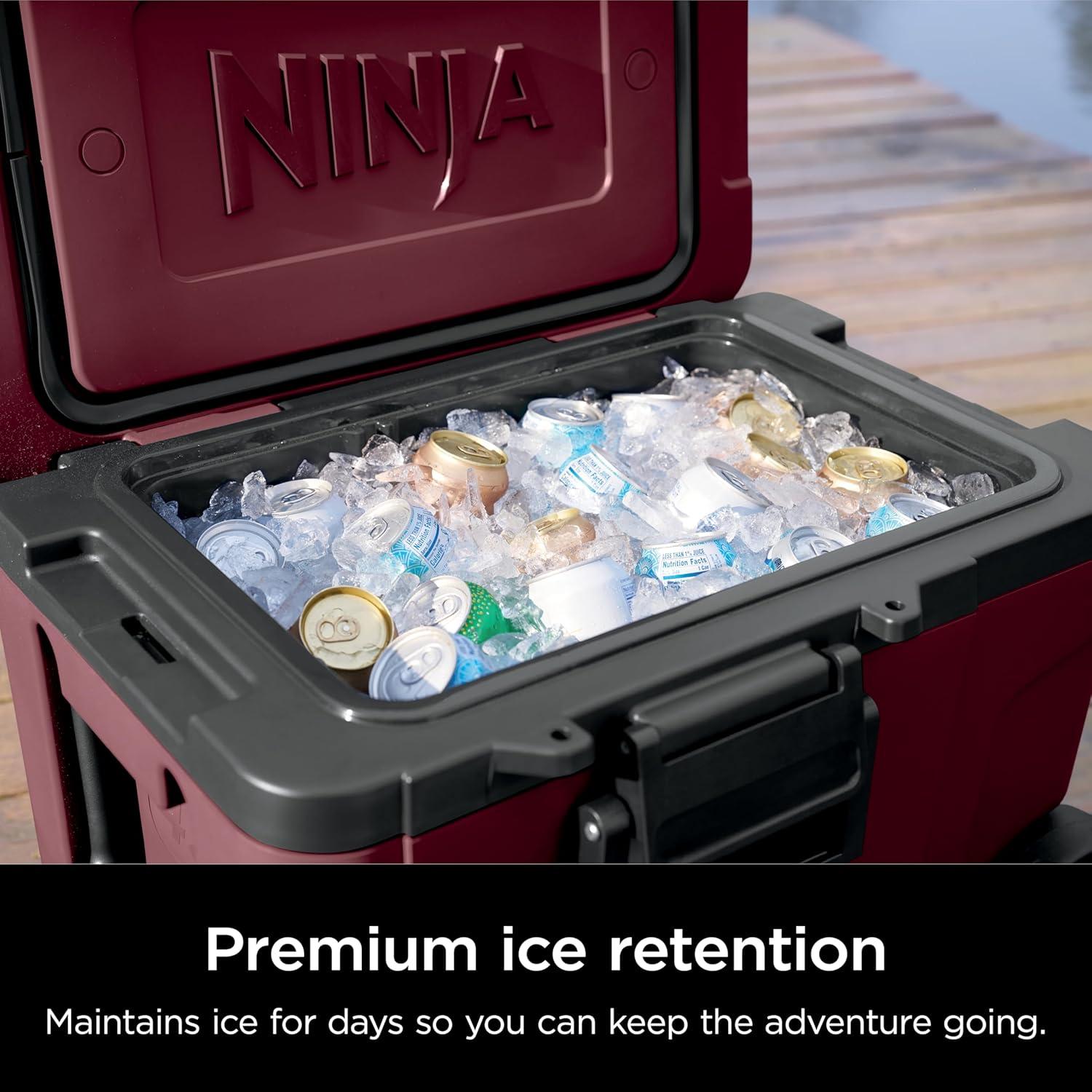 Ninja | Cooler | FrostVault 30QT Cooler with Wheels | Insulated with Temp Dry Storage Drawer | Keeps Ice Cold for Days | for The Beach, Camping, Picnics & More | Birch Beige | FB230CS(Merlot)