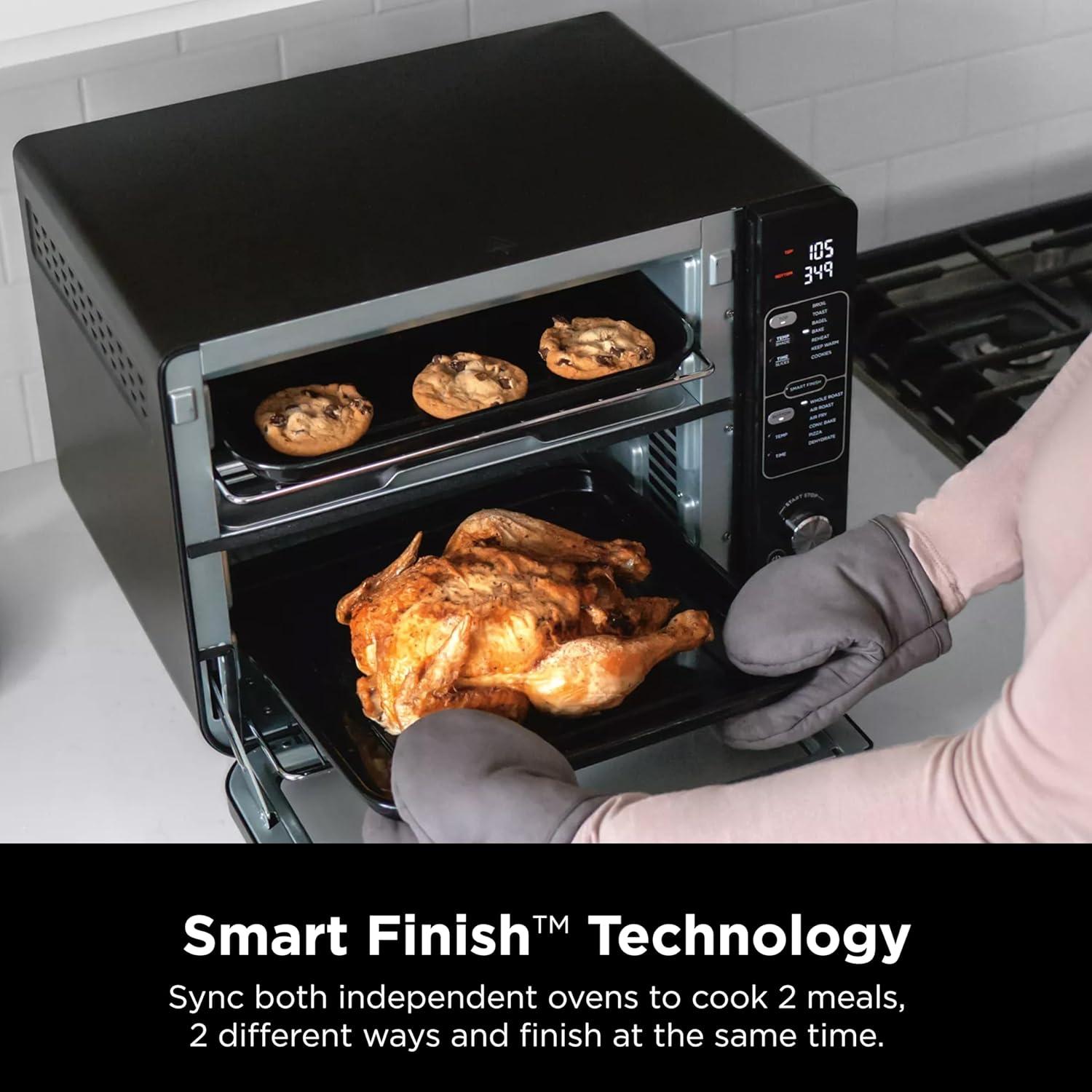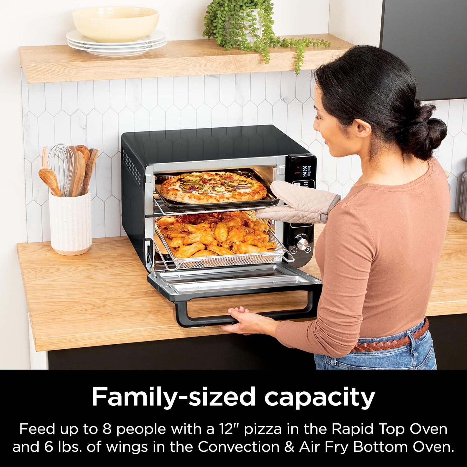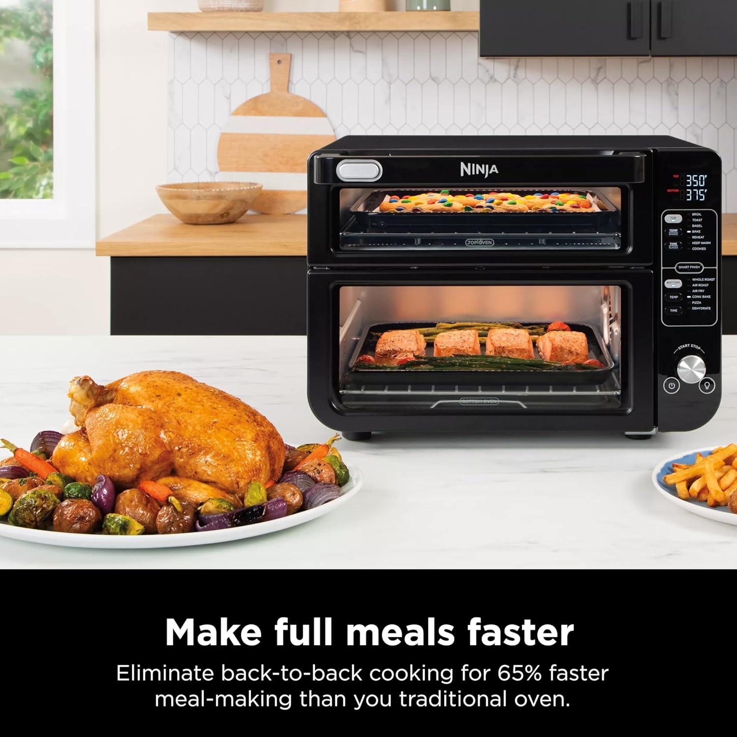 Ninja Double Oven with FlexDoor, FlavorSeal & Smart Finish, Air Fry, Bake, Roast, Toast, Fry, Pizza, Convection Oven, 13-in-1, Black, DCT402BK