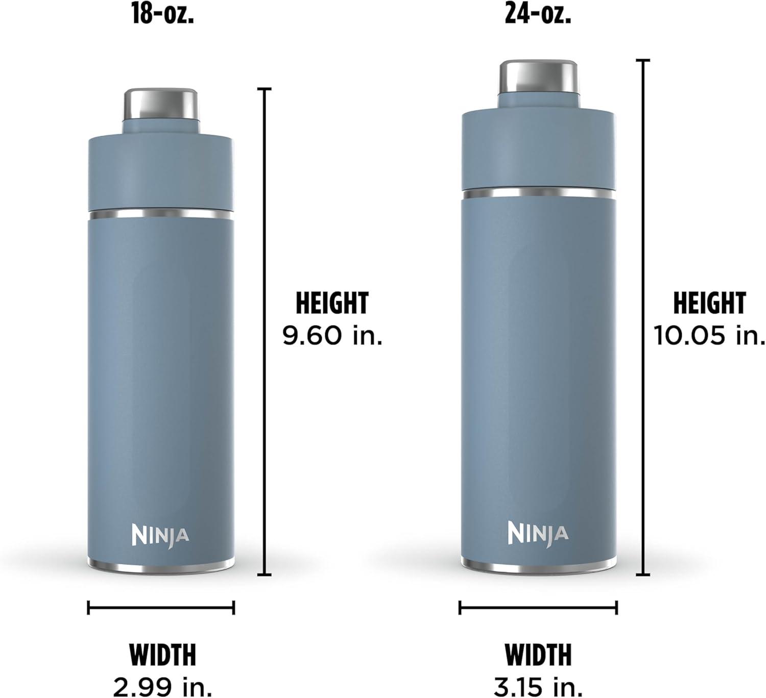 Ninja DW2401BK Thirsti 24oz Travel Water Bottle, For Carbonated Sparkling Drinks, Colder and Fizzier Longer, Leak Proof, 24 Hrs Cold, Dishwasher Safe, Stainless Steel Insulated Tumbler, Onyx Black(Blue)