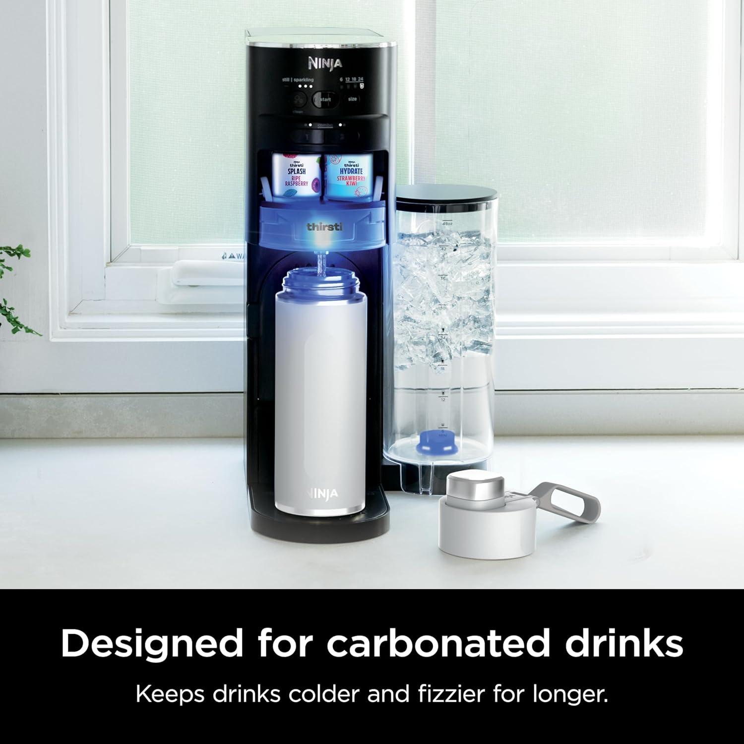 Ninja DW2401BK Thirsti 24oz Travel Water Bottle, For Carbonated Sparkling Drinks, Colder and Fizzier Longer, Leak Proof, 24 Hrs Cold, Dishwasher Safe, Stainless Steel Insulated Tumbler, Onyx Black(White)