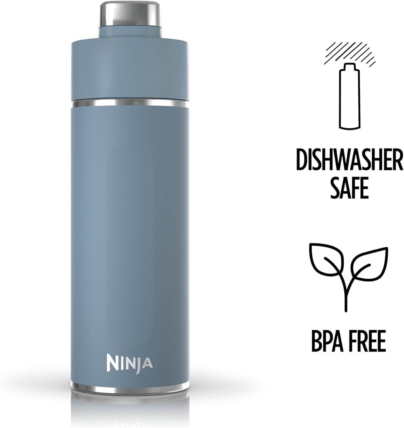 Ninja DW2401MT Thirsti 24oz Travel Water Bottle, For Carbonated Sparkling Drinks, Colder and Fizzier Longer, Leak Proof, 24 Hrs Cold, Dishwasher Safe, Stainless Steel Insulated Tumbler, Seafoam Blue(Blue)