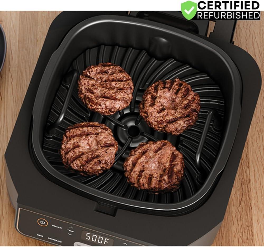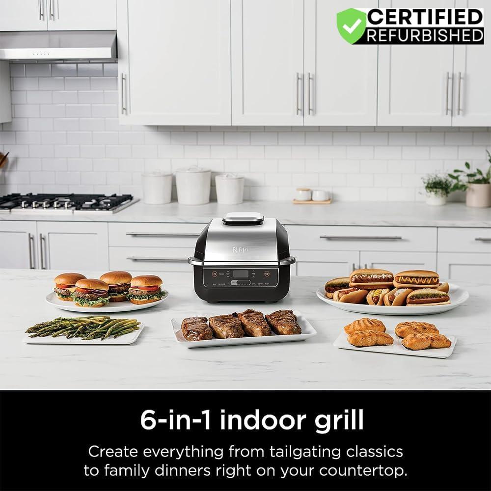 IN THE BOX: Ninja Foodi 6-in-1 Indoor Grill and 4-Quart Air Fryer – 10″ x 10″ Grill Grate – 4-qt. Crisper Plate – 6-qt. Cooking Pot – Chef-Created 15-Recipe Book – Cleaning brush