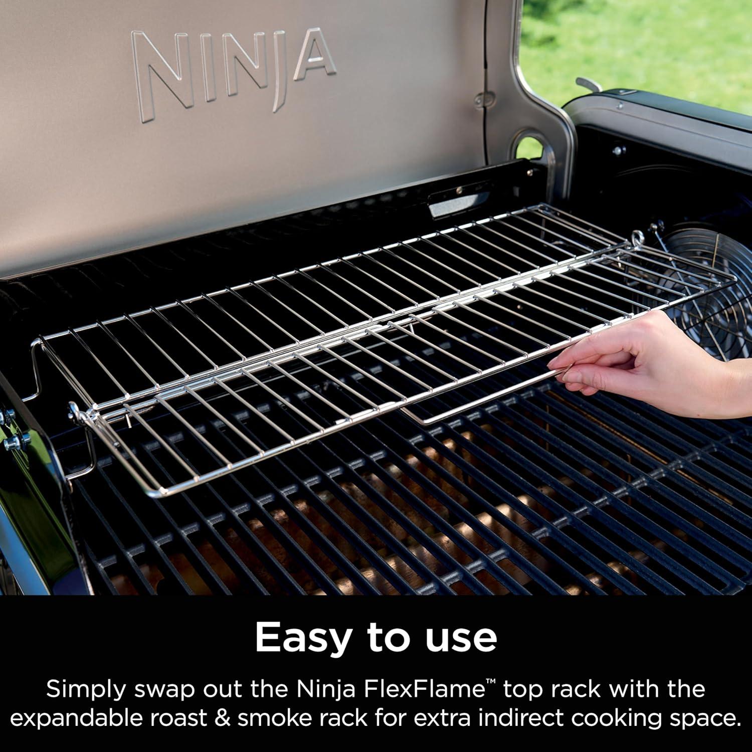 Ninja FlexFlame Upgrades Expandable Roast & Smoke Rack, More Indirect Cooking Space, Durable Stainless Steel Holds Up to 15lbs, Compatible with PG300 Series, XSKFLDINDRCTRK