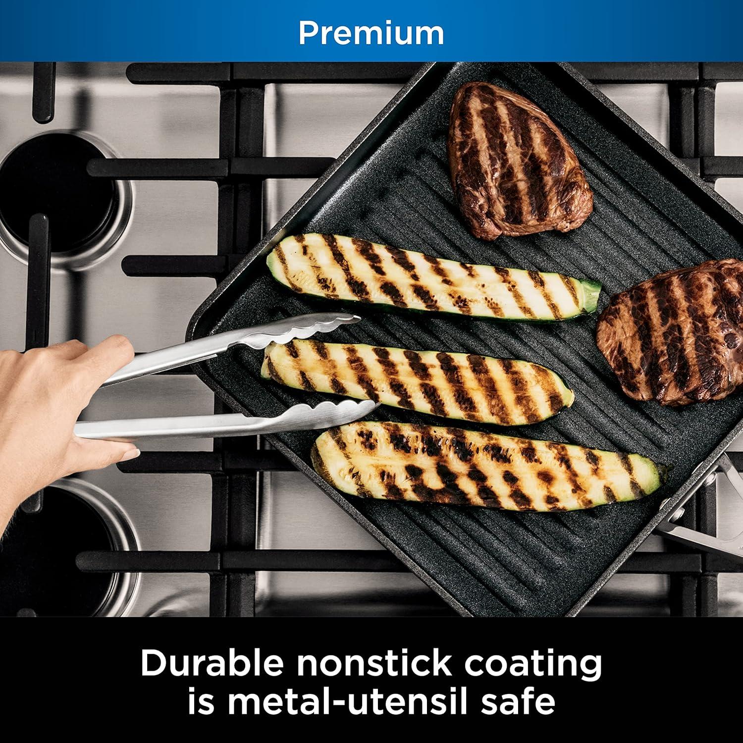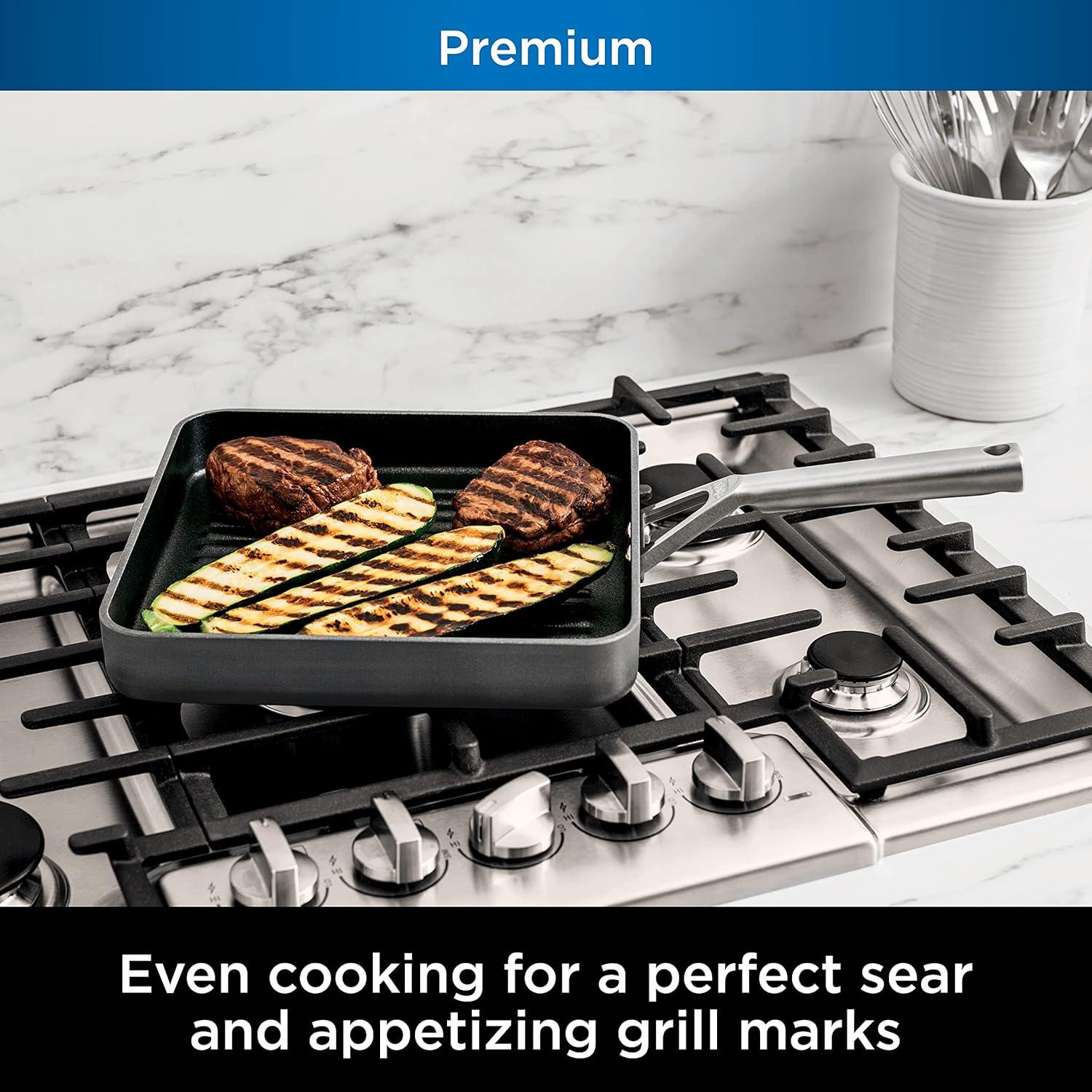 Ninja Foodi NeverStick Professional Hard-Anodized 4-Quart Sauté Pan with Glass Lid, Nonstick, Durable & Oven Safe to 500°F, Salt Grey, C30140(11″ Grill Pan)
