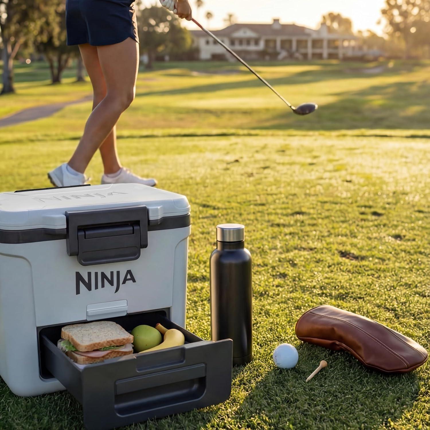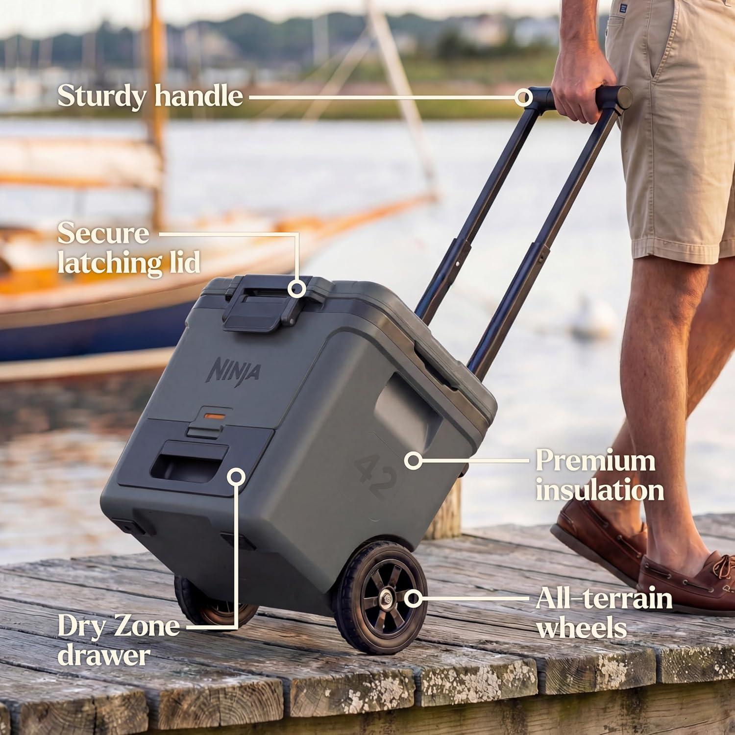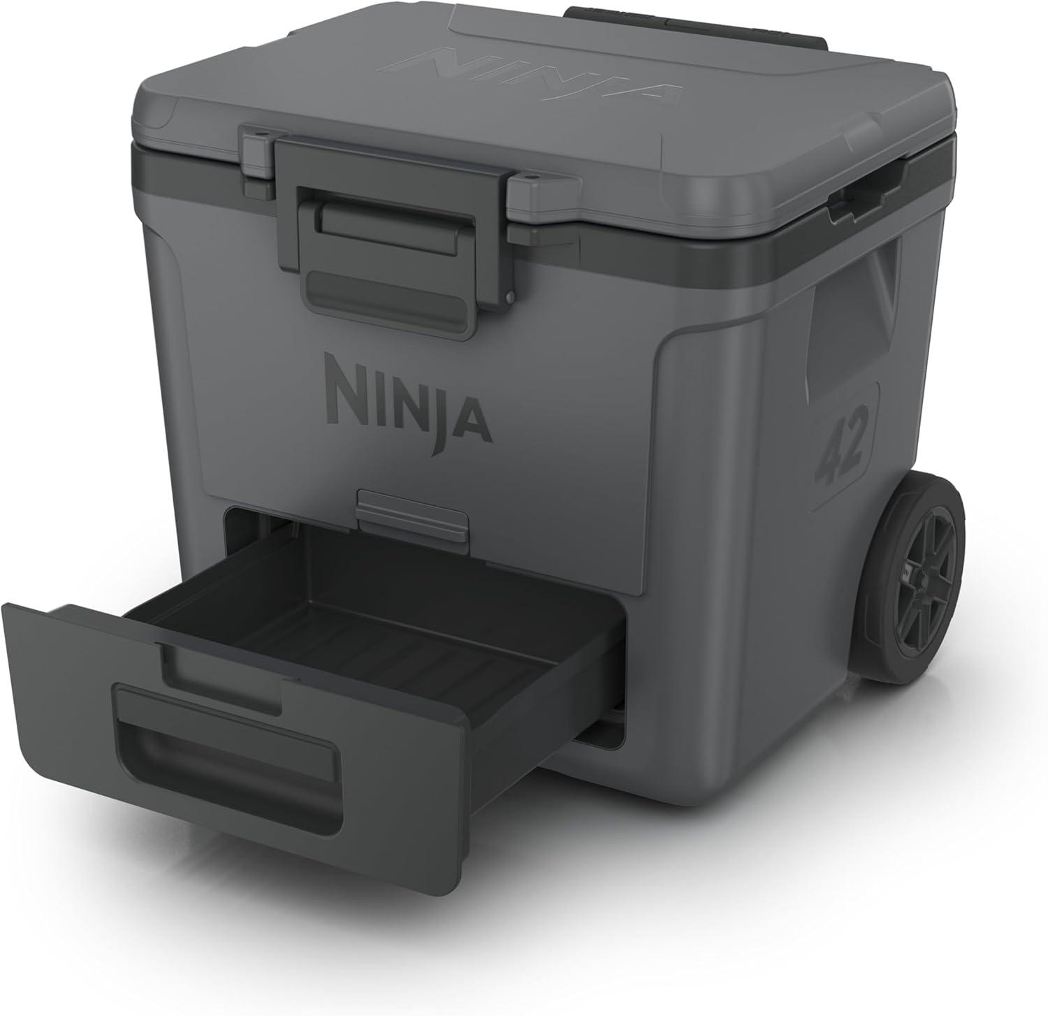 Ninja FrostVault 42qt Wheeled Cooler with Cold Dry Zone | Integrated Fridge-Temp Dry Storage Drawer | Premium Heavy-Duty Insulated Cooler | Keeps Ice Cold for Days | Halocline Green | FB242TL(Charcoal Grey)