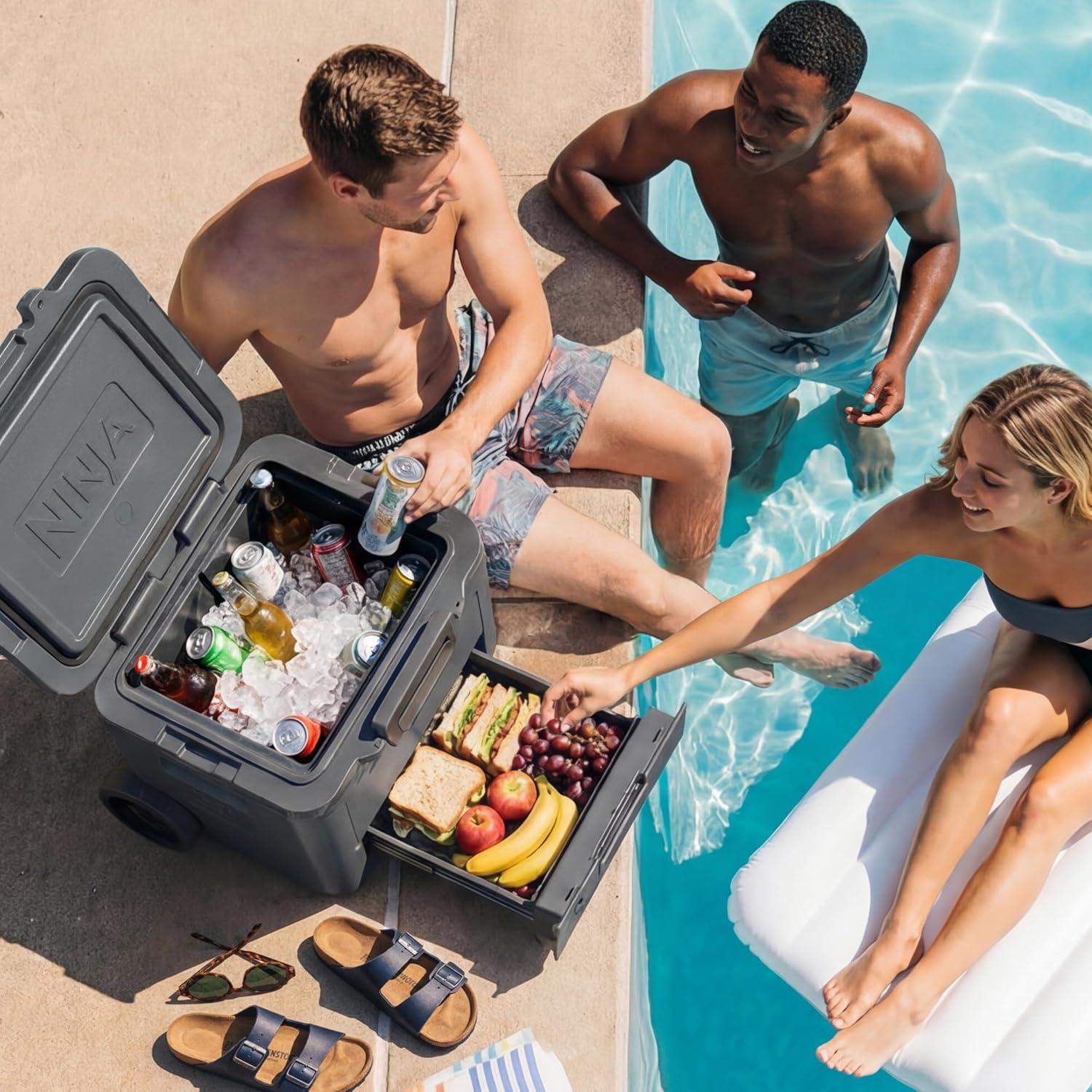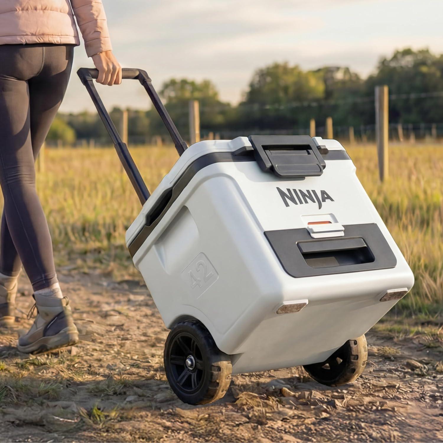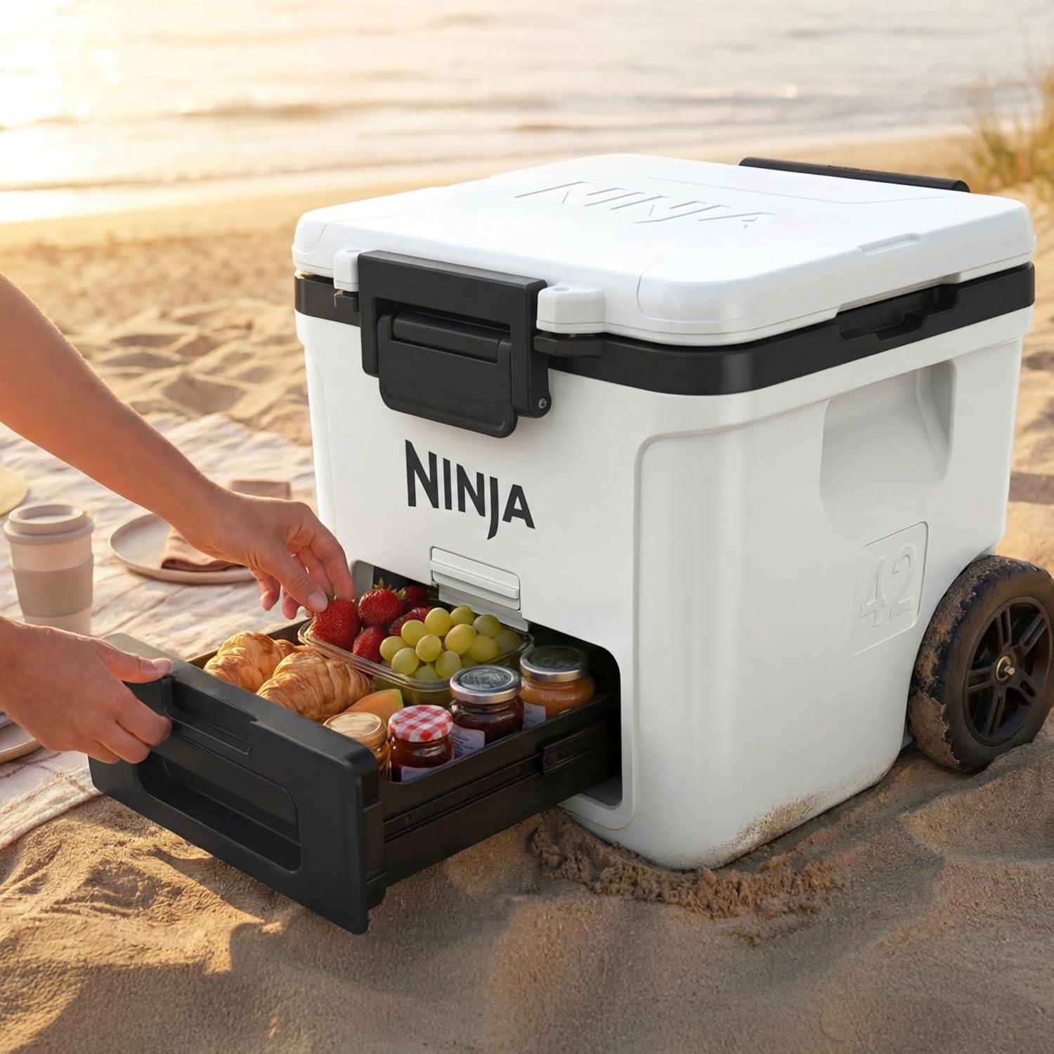 Ninja FrostVault 42qt Wheeled Cooler with Cold Dry Zone | Integrated Fridge-Temp Dry Storage Drawer | Premium Heavy-Duty Insulated Cooler | Keeps Ice Cold for Days | Halocline Green | FB242TL(Strawberry Rhubarb)