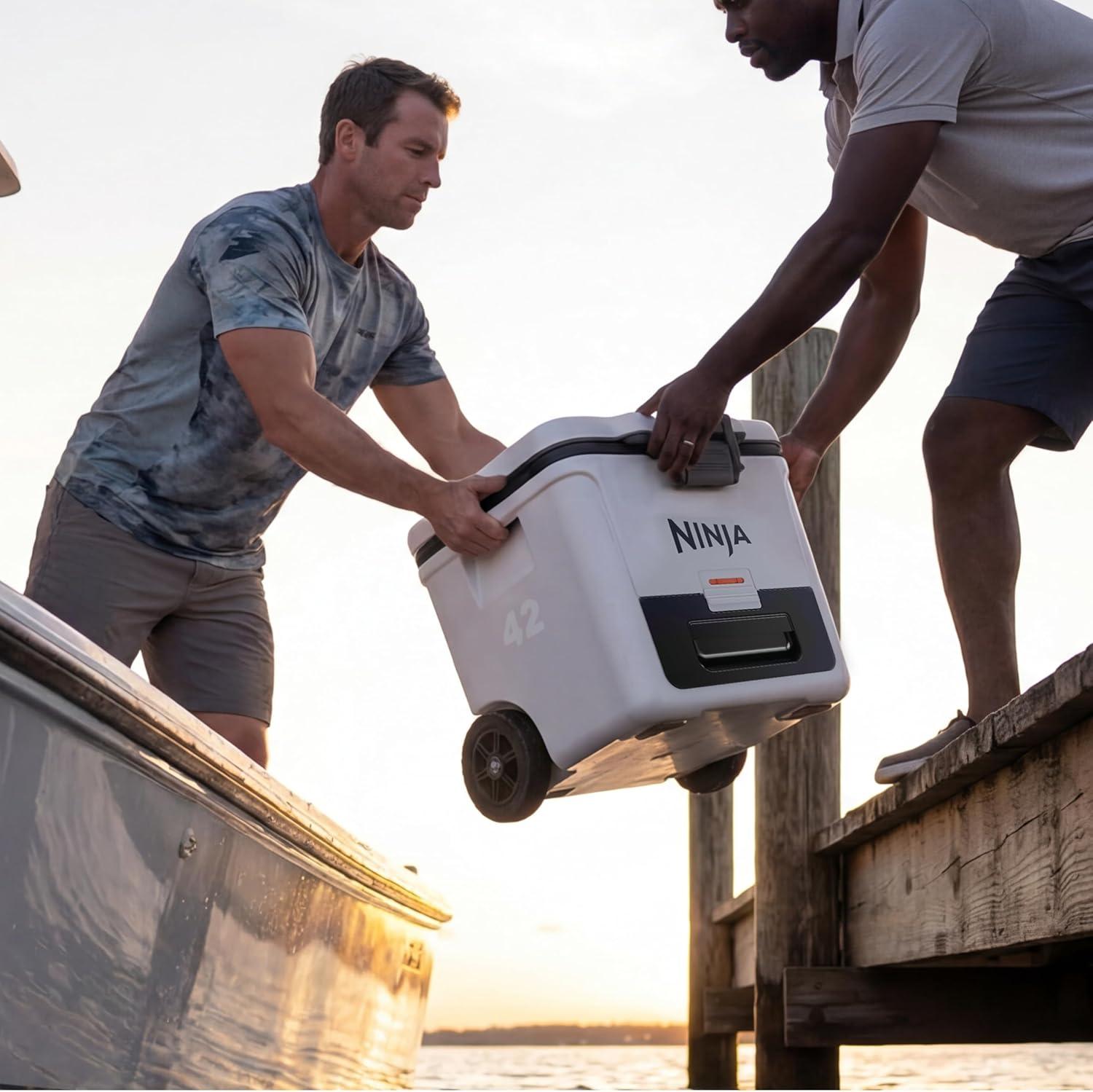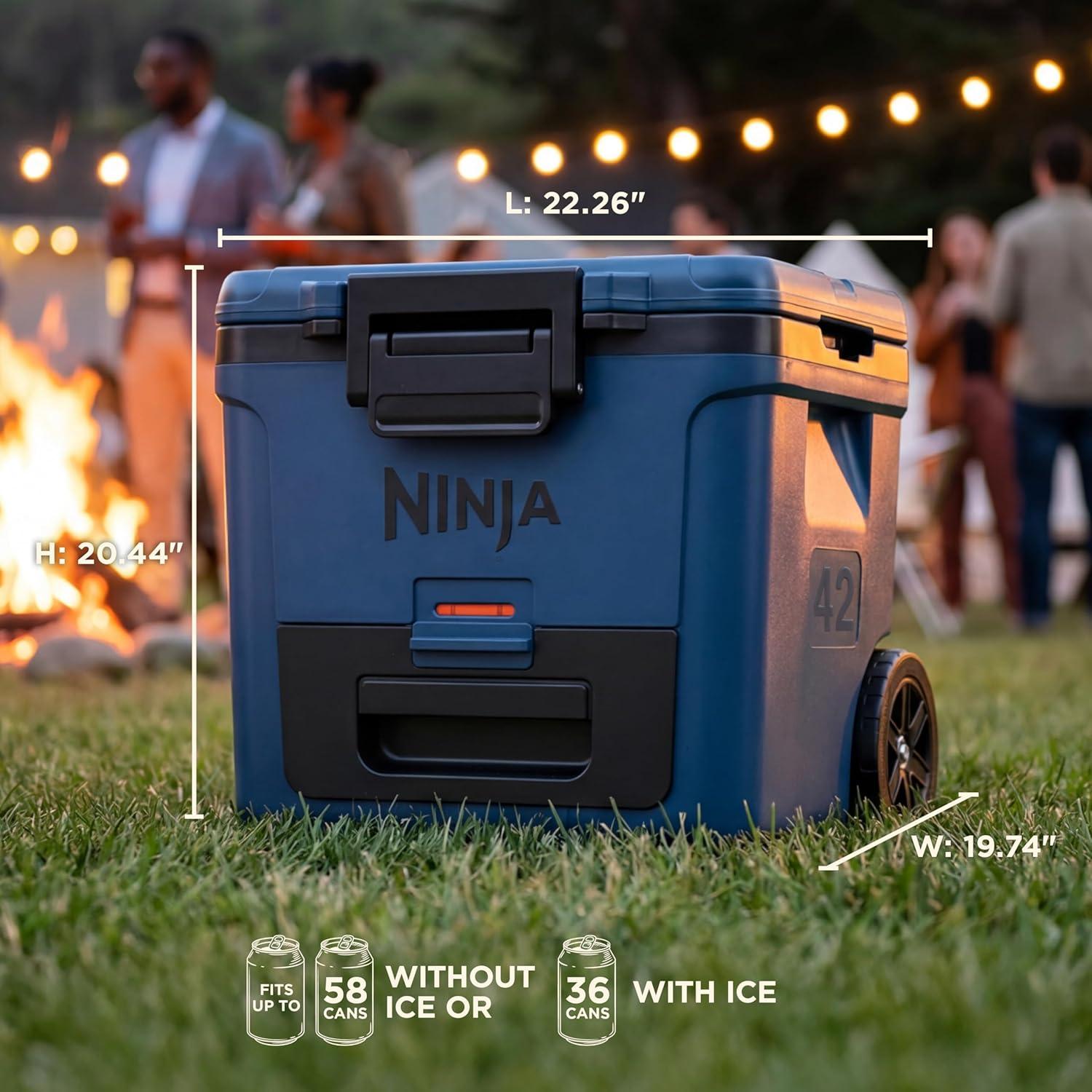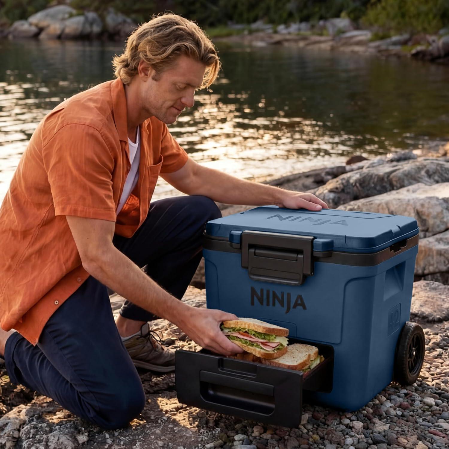 Ninja FrostVault 42qt Wheeled Cooler with Cold Dry Zone | Integrated Fridge-Temp Dry Storage Drawer | Premium Heavy-Duty Insulated Cooler | Keeps Ice Cold for Days | Halocline Green | FB242TL(Strawberry Rhubarb)