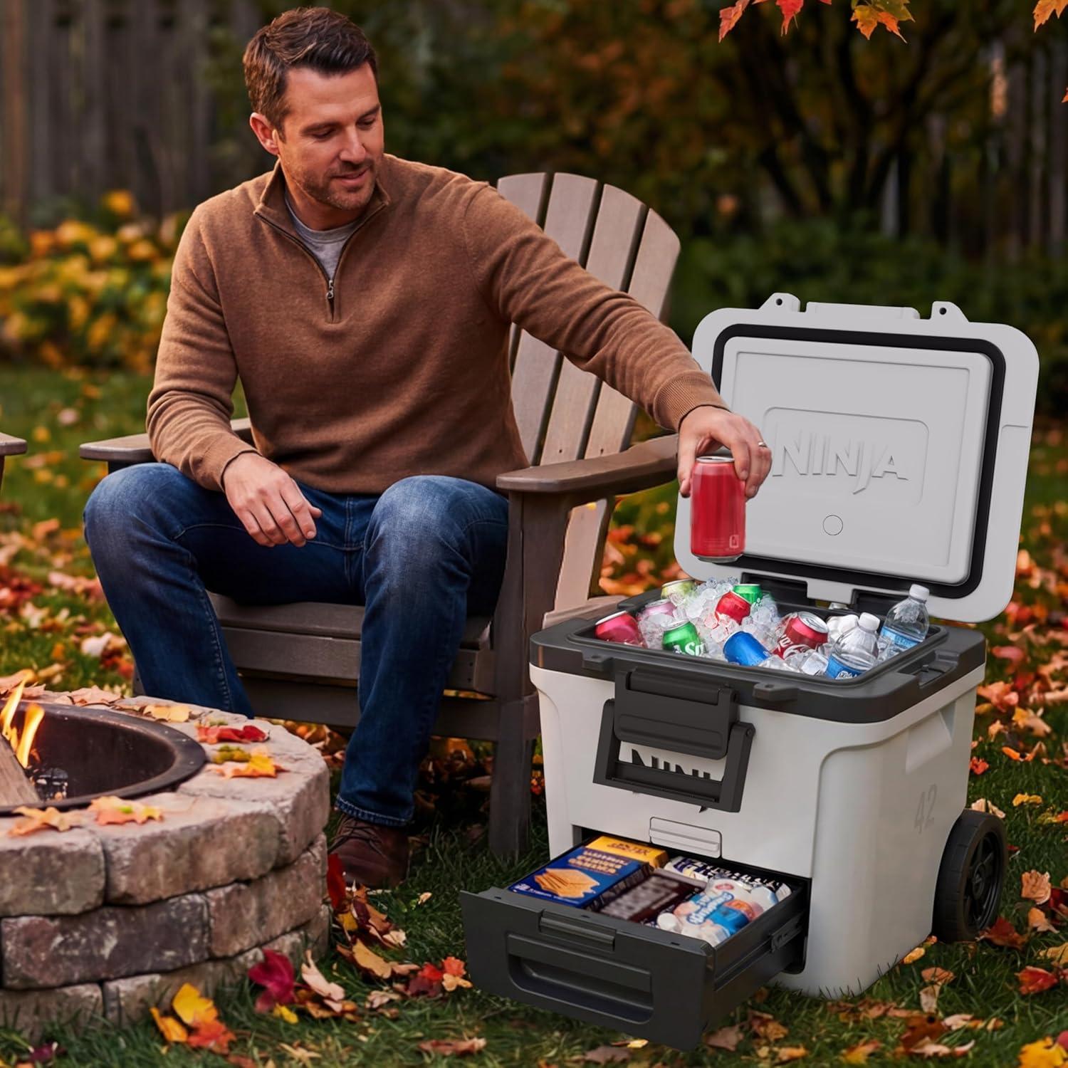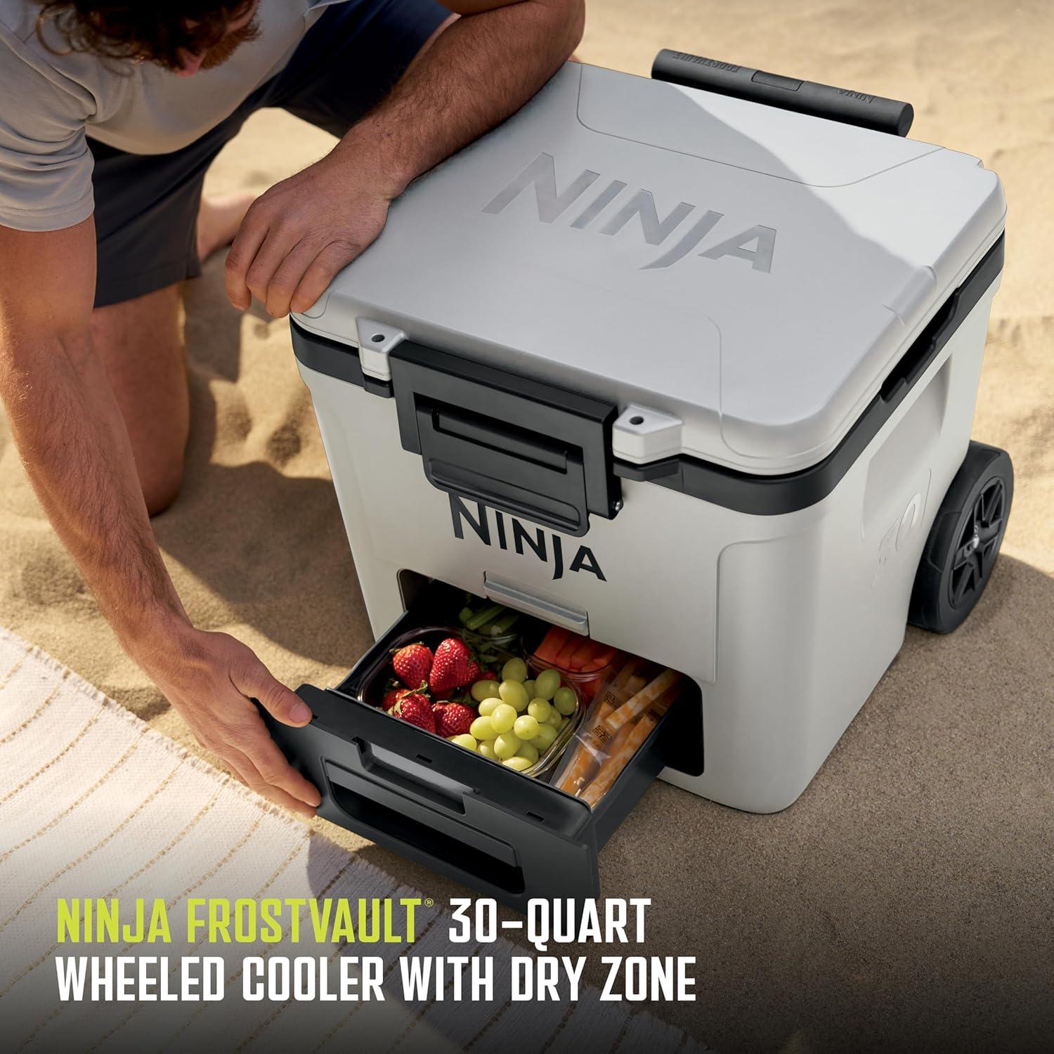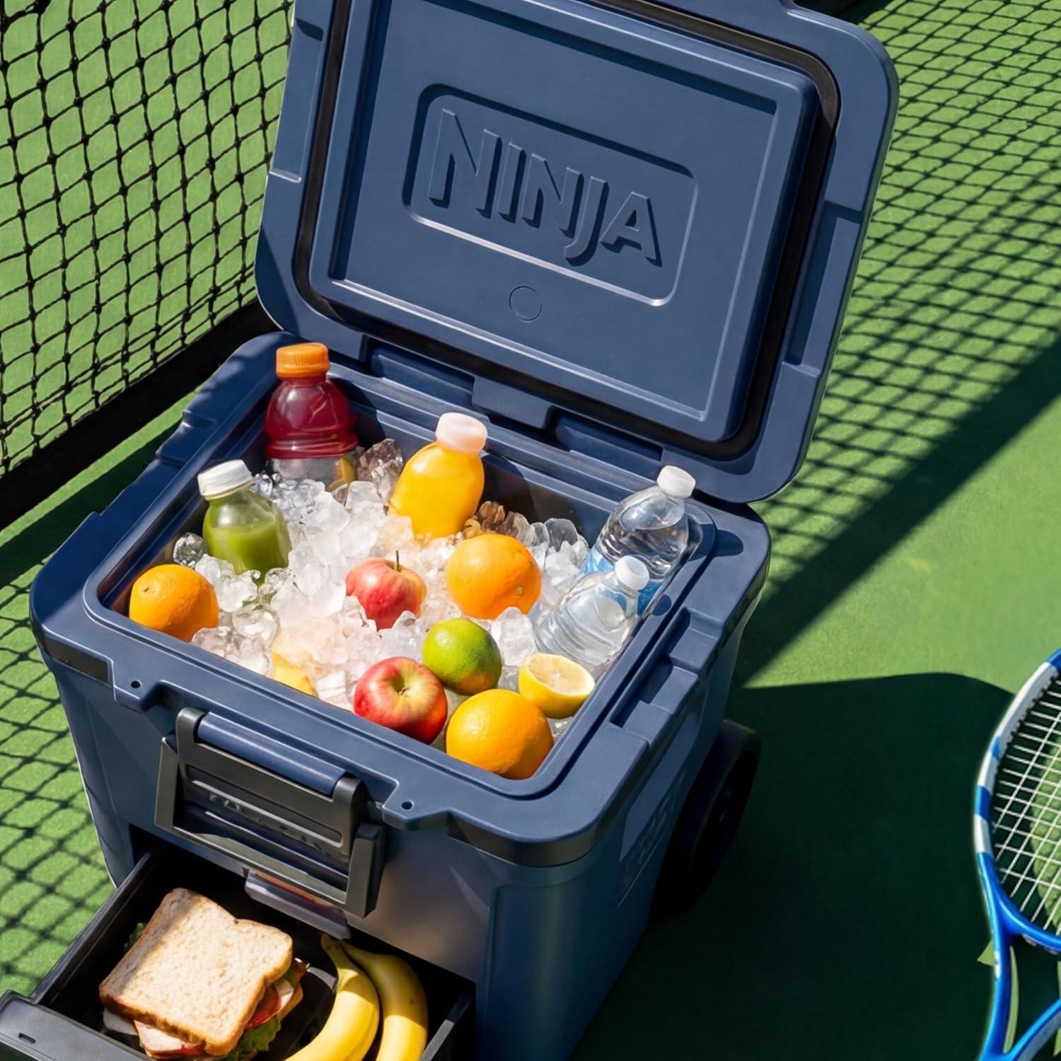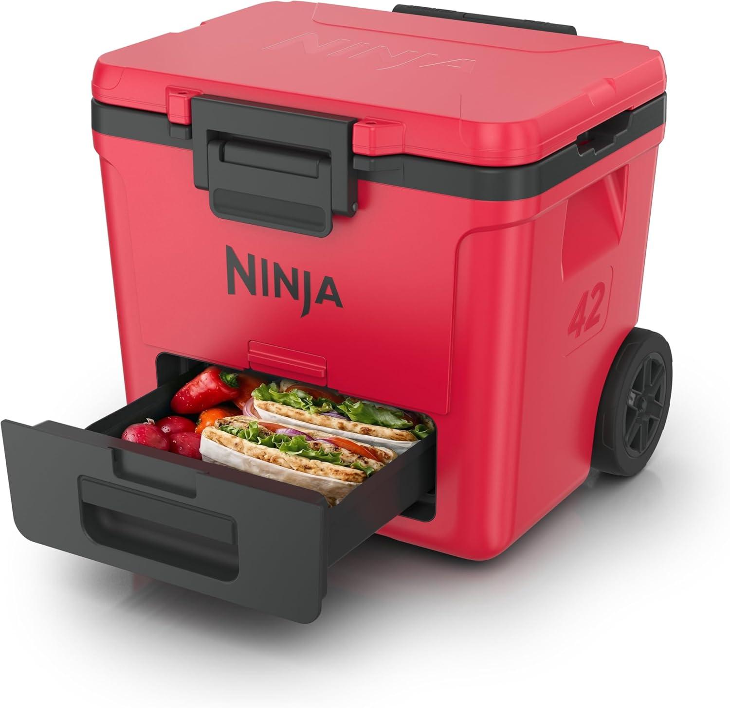 Ninja FrostVault 42qt Wheeled Cooler with Cold Dry Zone | Integrated Fridge-Temp Dry Storage Drawer | Premium Heavy-Duty Insulated Cooler | Keeps Ice Cold for Days | Halocline Green | FB242TL(True Red)
