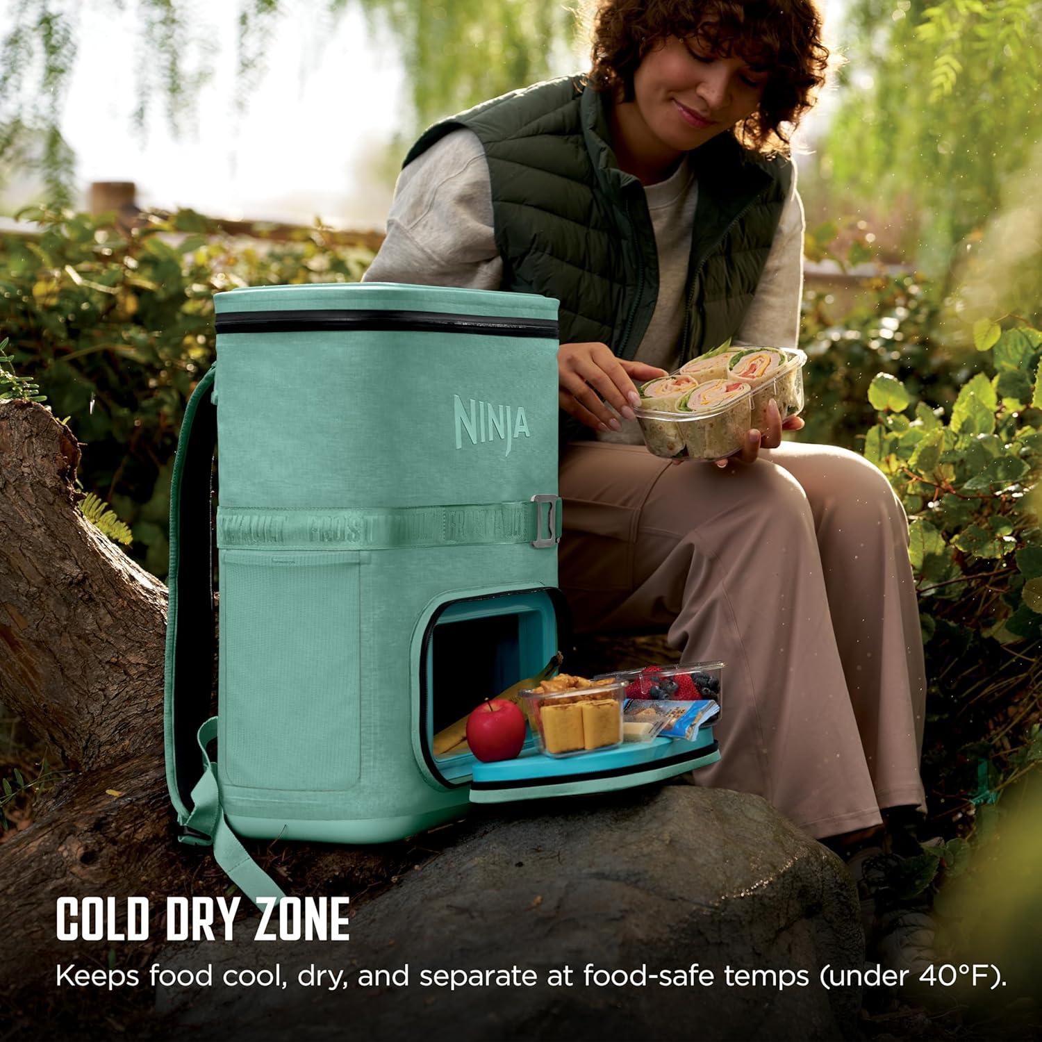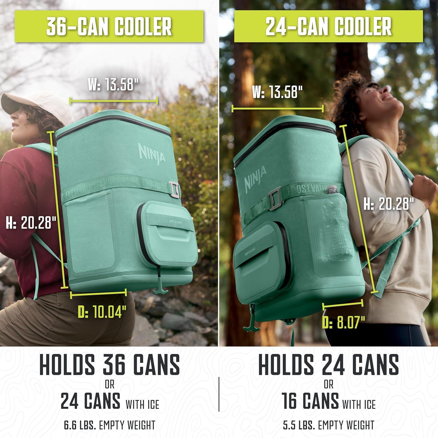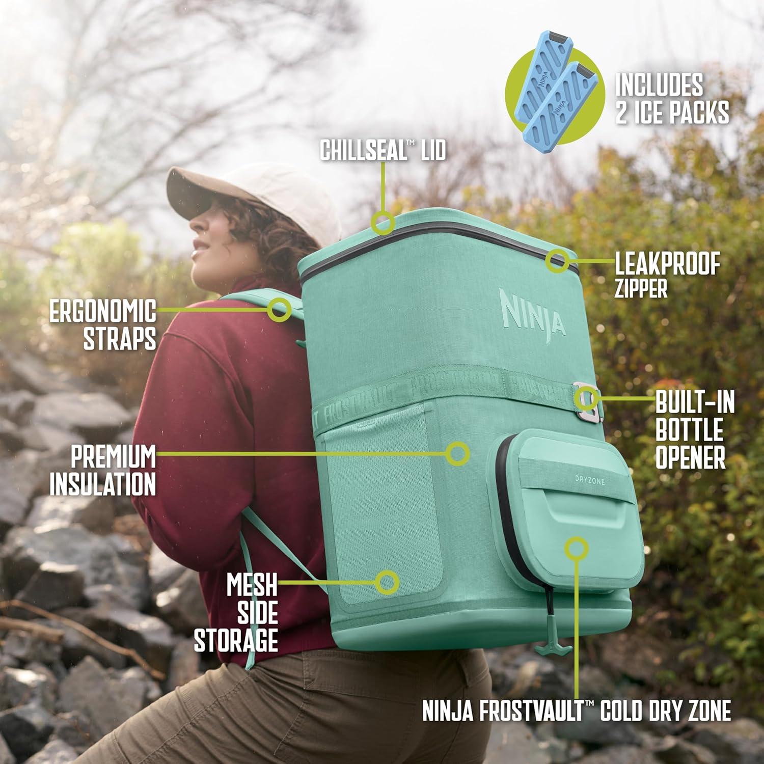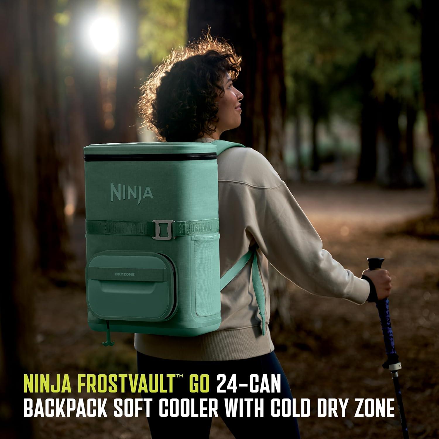 Ninja FrostVault Go Can Soft Cooler, 24/36 Can, Leak Proof, Built-In Cup Holder, 2 Ice Packs & Dry Storage Drawer, Polyester Insulation, Hiking, Camping, Picnic(Aqua)
