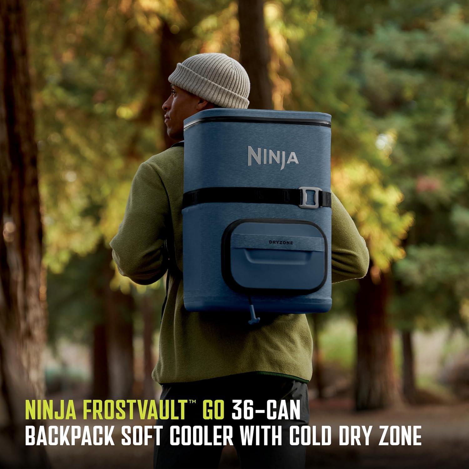 Ninja FrostVault Go Can Soft Cooler, 24/36 Can, Leak Proof, Built-In Cup Holder, 2 Ice Packs & Dry Storage Drawer, Polyester Insulation, Hiking, Camping, Picnic(Blue)