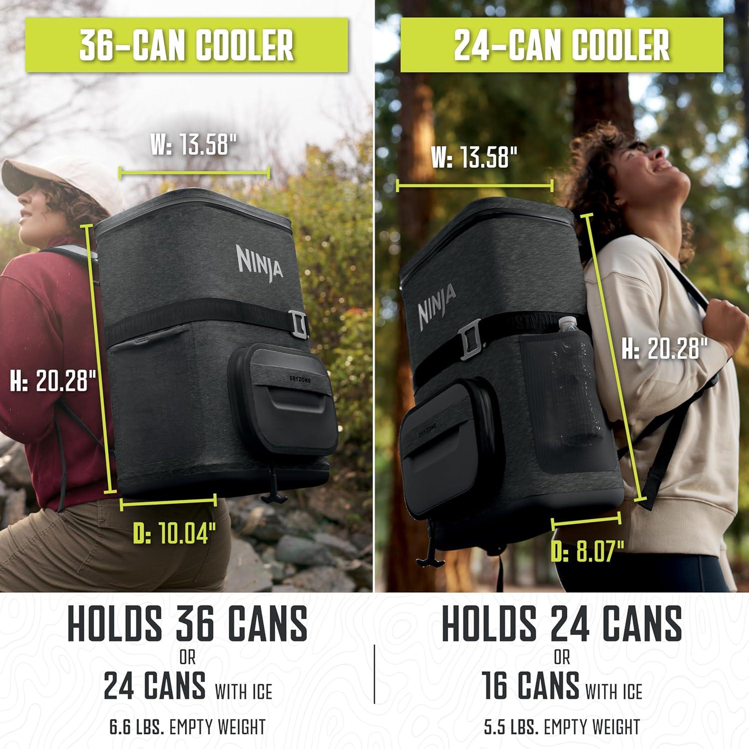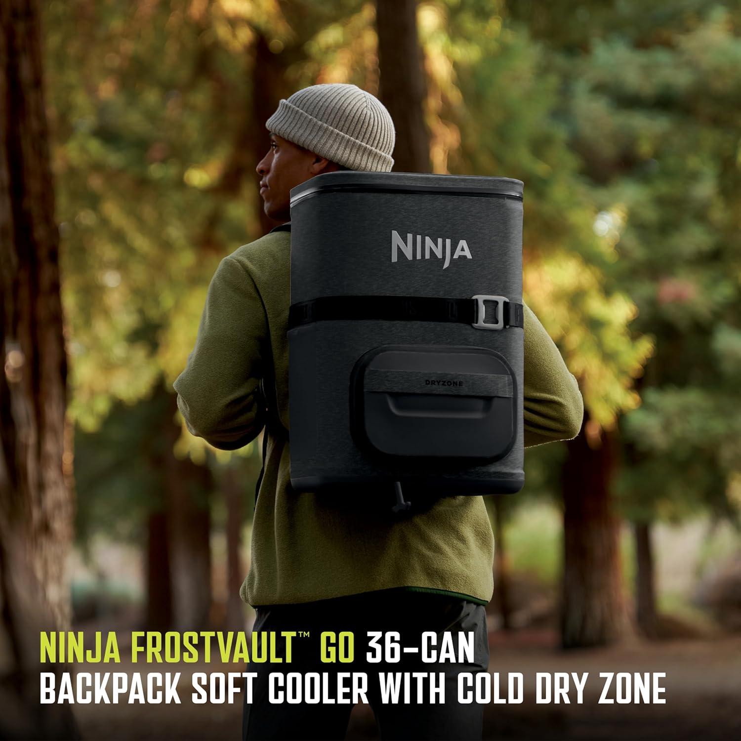 Ninja FrostVault Go Can Soft Cooler, 24/36 Can, Leak Proof, Built-In Cup Holder, 2 Ice Packs & Dry Storage Drawer, Polyester Insulation, Hiking, Camping, Picnic(Dark Grey)