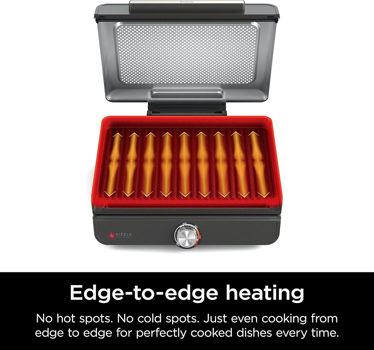 Ninja GR100 Sizzle Smokeless Indoor Grill with Nonstick Grill Plate, Dishwasher-Safe Removable Mesh Lid, 500F Max Heat, Even Edge-to-Edge Cooking, Black (Renewed)(Sizzle Indoor Grill & Griddle)