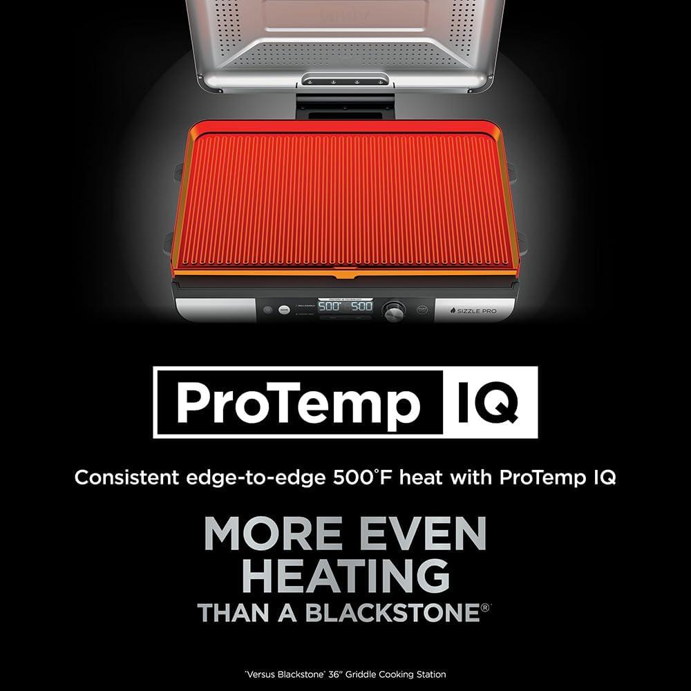 CUSTOM TEMPERATURE CONTROL WITH PROTEMP IQ: Dial into precise temperatures from 250°F–500°F for more accurate readouts* and better heat management*. *Vs Ninja Sizzle GR101