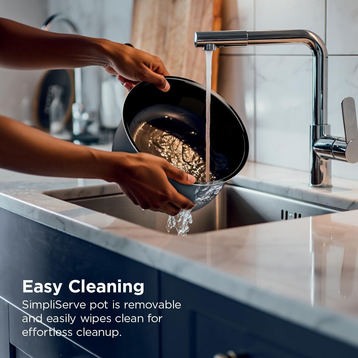 EASY TO CLEAN & MADE PFAS FREE: SimpliServe Pot is removable and features a ceramic, nonstick surface made 100% PFAS free. Designed for quick and easy maintenance—wipe away sticky foods and burnt-on residue with minimal effort.