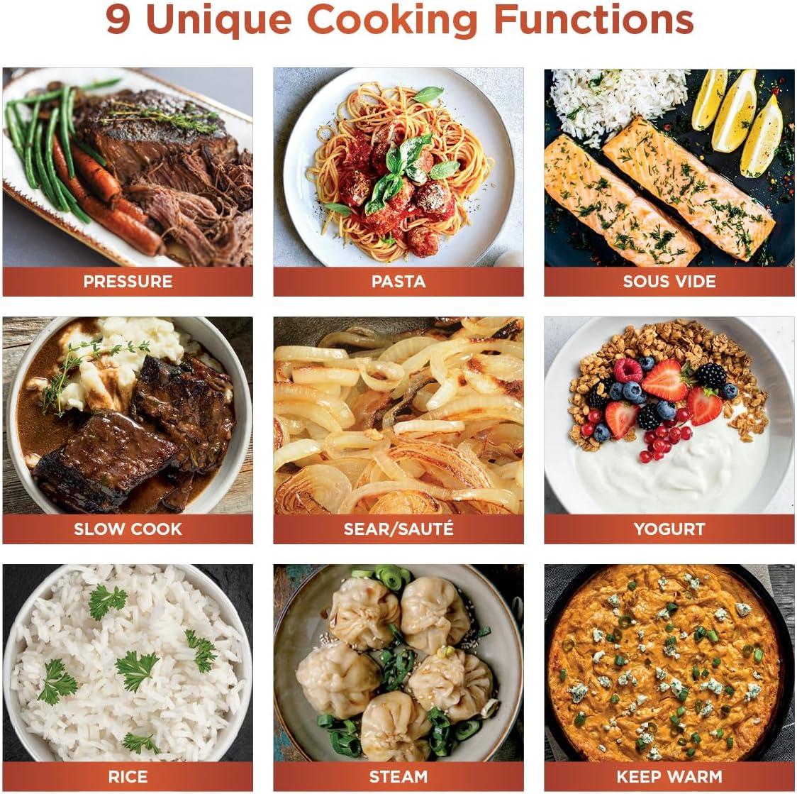 9-IN-1 VERSATILITY: Pressure, Slow Cook, Rice, Pasta, Sear/Sauté, Yogurt, Steam, Sous Vide, and Keep Warm.