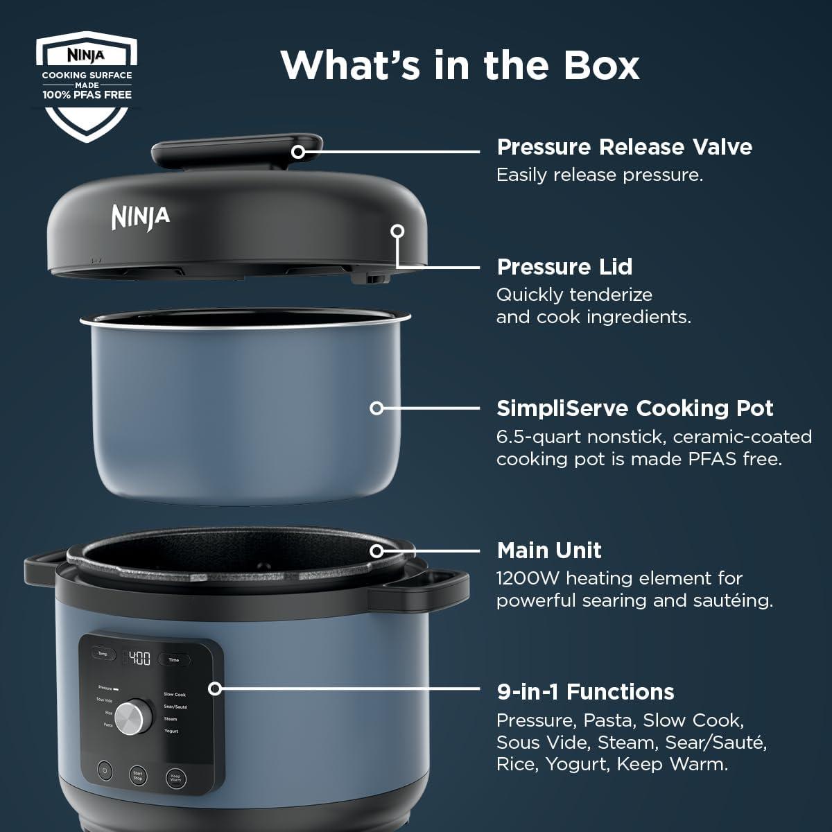 Ninja HyperHeat 9-in-1 6.5-qt Pressure Cooker | Steams, Slow Cooks, Sears, Sautés, Sous Vide, Yogurt & More | With SimpliServe Pot | Powerful 1200-Watt | Blue Macaron | PC201(Blue Macaron)