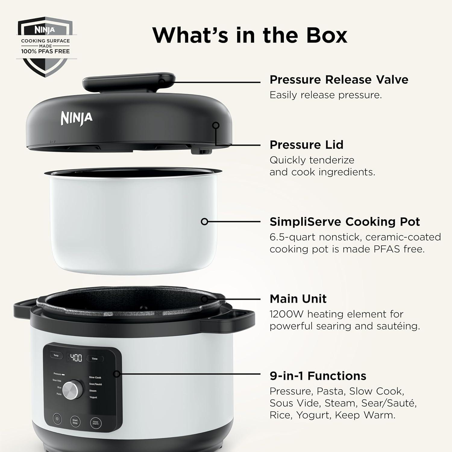 Ninja HyperHeat 9-in-1 6.5-qt Pressure Cooker | Steams, Slow Cooks, Sears, Sautés, Sous Vide, Yogurt & More | With SimpliServe Pot | Powerful 1200-Watt | Blue Macaron | PC201(White)