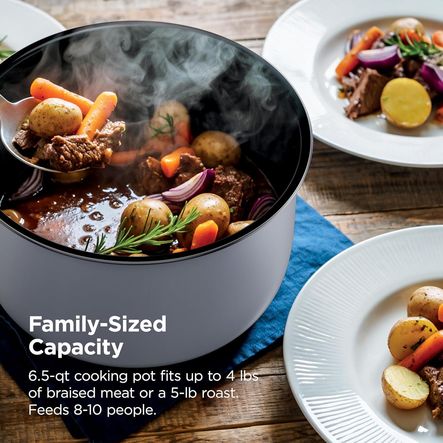 FAMILY-SIZED CAPACITY: 6.5-qt cooking pot fits up to 4 lbs of braised meat, a 4-lb chicken, or a 5-lb roast. Feeds 8–10 people.