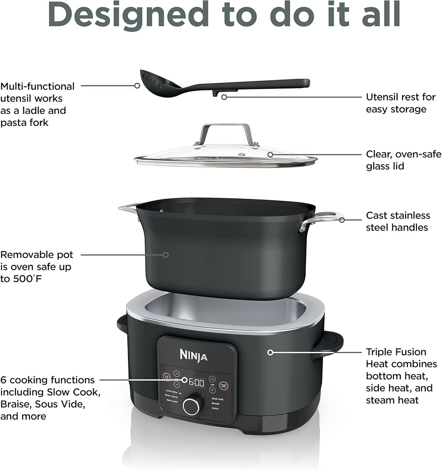 Ninja MC1001 Foodi PossibleCooker PRO 8.5 Quart Multi-Cooker, with 8-in-1 Slow Cooker, Dutch Oven, Steamer, Glass Lid Integrated Spoon, Nonstick, Oven Safe Pot to 500°F, Sea Salt Gray(Black)