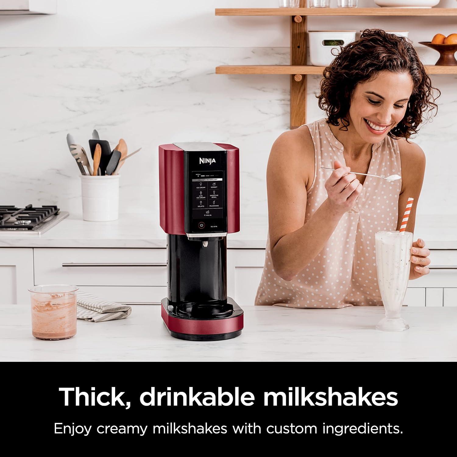 Ninja NC301 CREAMi Ice Cream Maker, for Gelato, Mix-ins, Milkshakes, Sorbet, Smoothie Bowls & More, 7 One-Touch Programs, with (2) Pint Containers & Lids, Compact Size, Perfect for Kids, Rose Gold(Red)