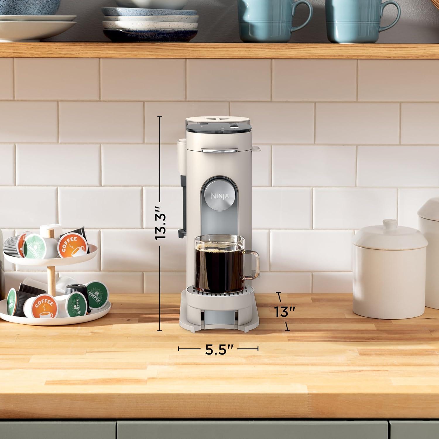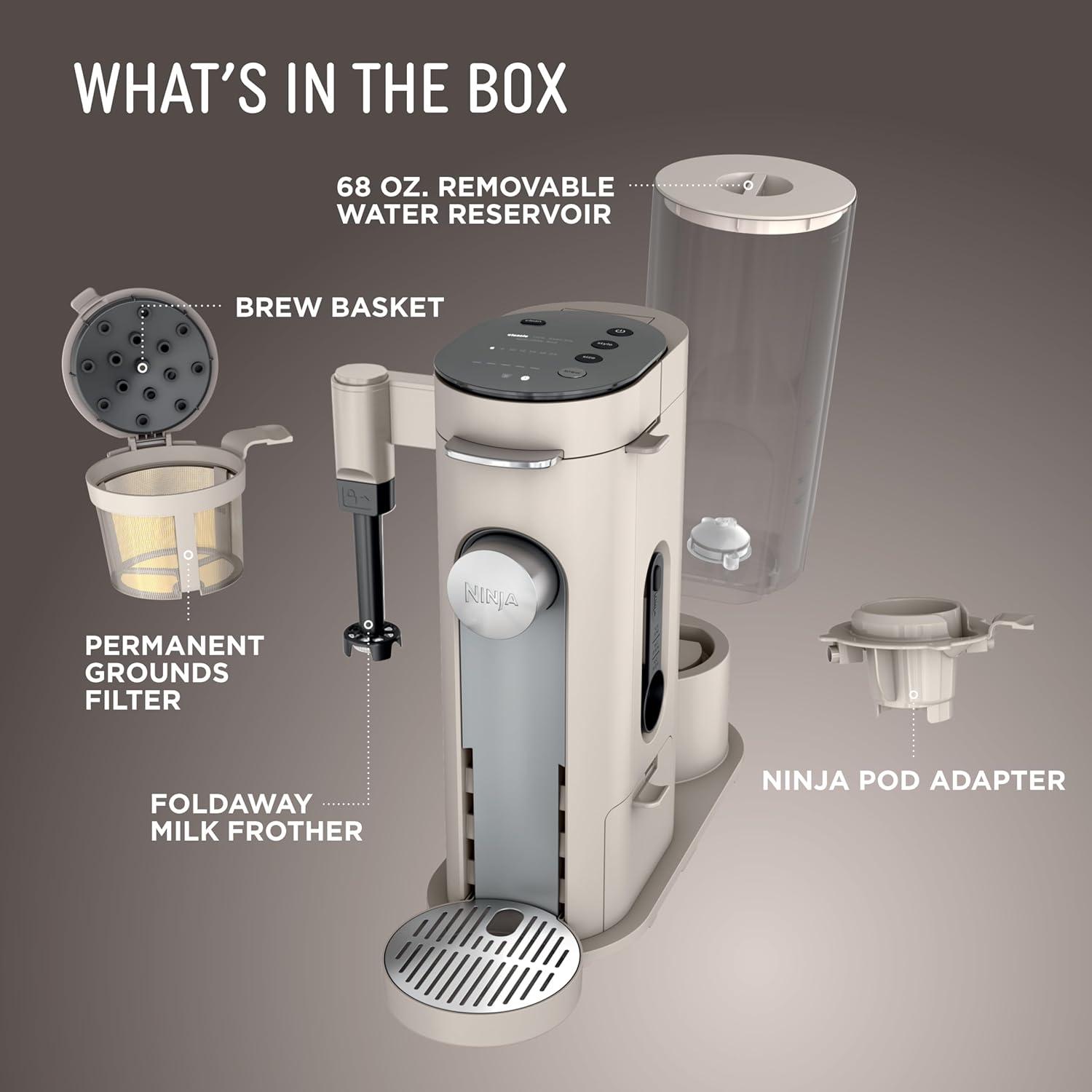 Ninja PB051GB Single-Serve Pods & Grounds Specialty Coffee Maker conveniently brews your favorite grounds and coffee pods in a compact footprint. Enjoy your coffee at home or on the go with 7 sizes from a 6-oz. cup to a 24-oz. travel mug. With Thermal Flavor Extraction DUO enjoy a Classic, Rich, Over Ice, or Specialty coffee. Create a coffeehouse-style drink at home with the built-in frother.
