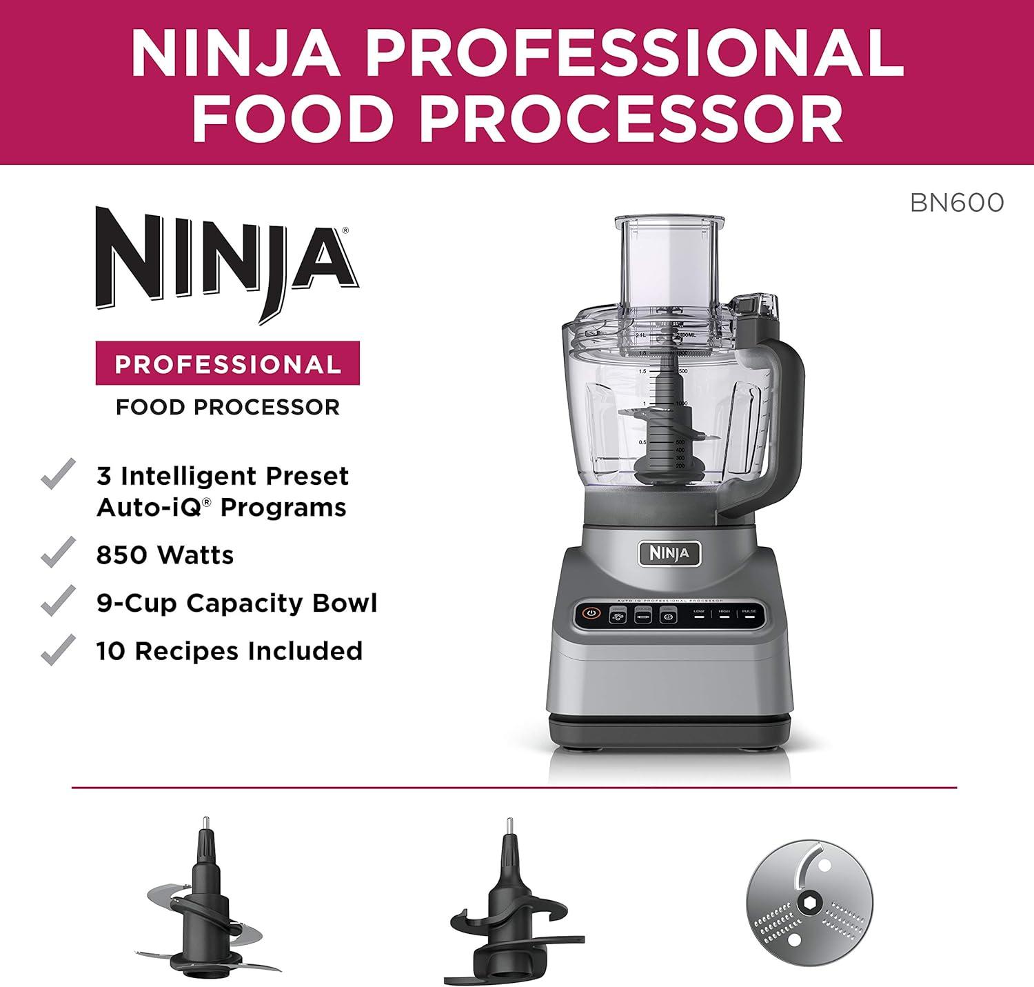 Ninja Professional Plus Food Processor 850-Watts With Auto-iQ Preset Programs Chop Puree Dough Slice Shred With a 9-Cup Capacity and a Silver Stainless Finish (BN600C) – Canadian Version (Renewed)(New Version)