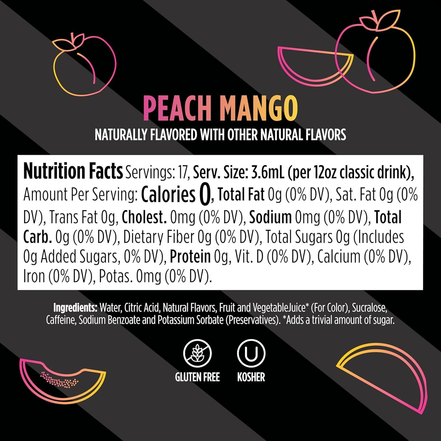 Ninja Thirsti Flavored Water Drops, FRUITI CHILL+ Wild Berry, Bold Fruit Flavor with Caffeine, Sparkling or Still, Zero Calories, Zero Sugar, Makes 17, 12oz drinks, 3 Pack, WCFWDBRAM(Peach Mango)
