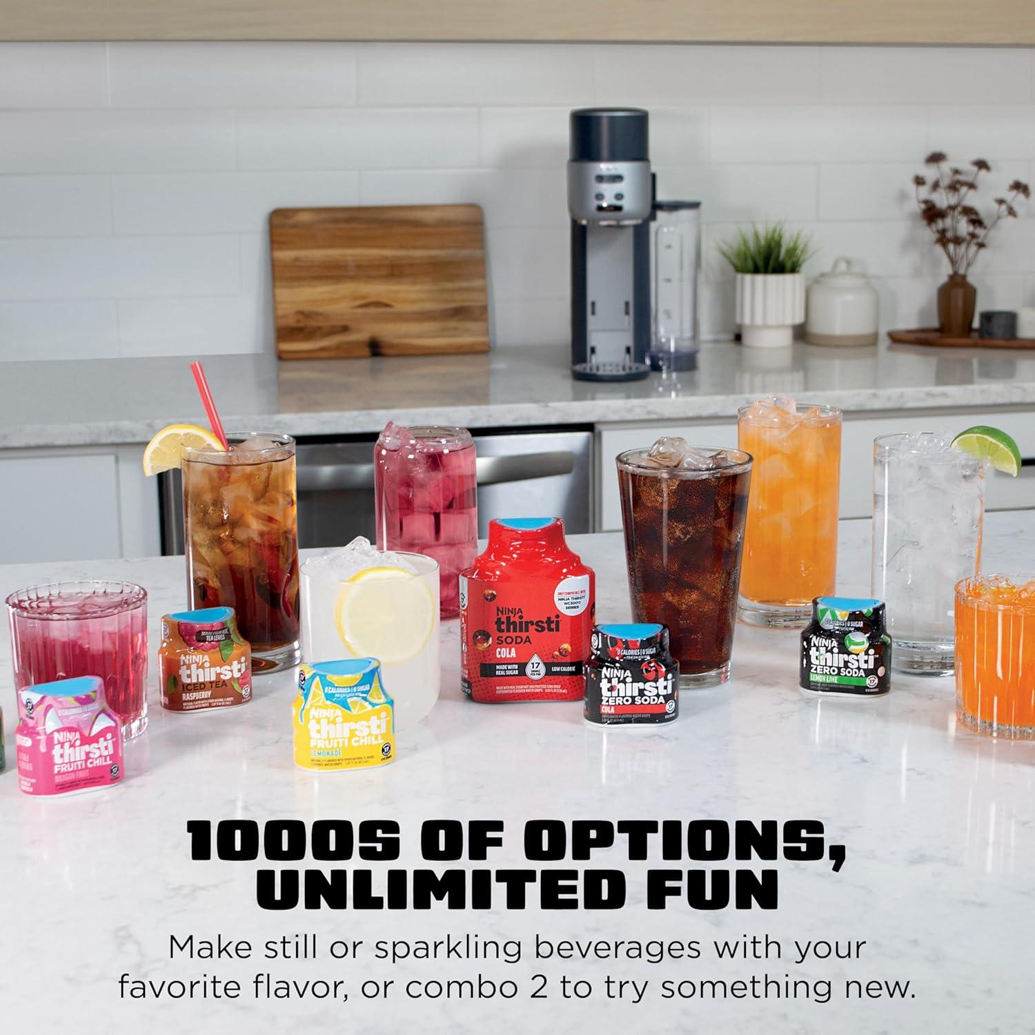 Ninja Thirsti Ultimate Drink System | Still or Sparkling Soda Maker | Create fountain-fresh drinks with 20+ zero or low-calorie flavors | Customize your fizz and flavor | Cyberspace | WC3001BL2(Cyberspace)