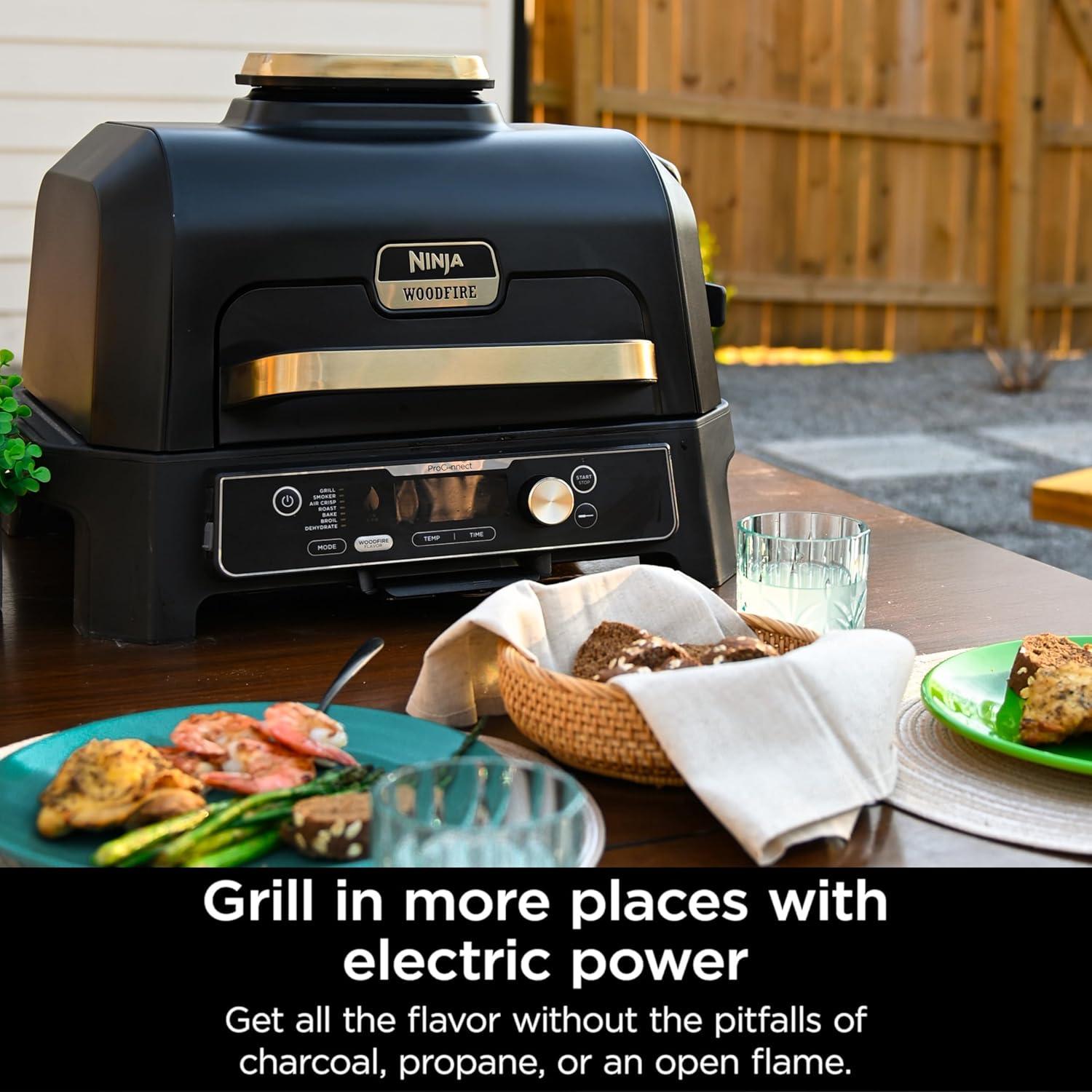 Ninja Woodfire Pro Connect XL Outdoor Grill & Smoker | Bluetooth, App Enabled | 7-in-1 Grill, BBQ Smoker, Outdoor Air Fryer | Woodfire Technology | Built-In Thermometer | Black & Gold | OG951BK1(Black & Gold)
