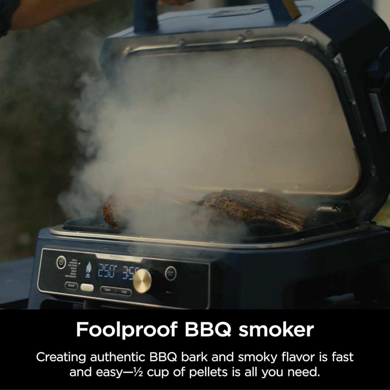FOOLPROOF BBQ SMOKER: Authentic BBQ bark and flavor—fast and easy with just ½ cup of pellets.