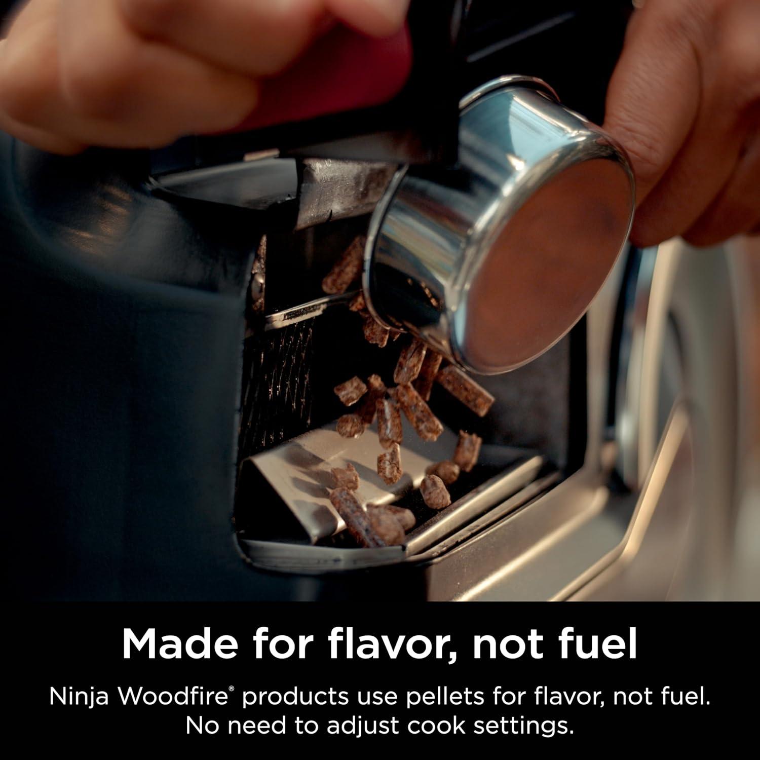FLAVOR NOT FUEL: Ninja Woodfire products use pellets only for flavor—not for fuel. Only 1/2 cup of pellets is required to create delicious smoky flavors.