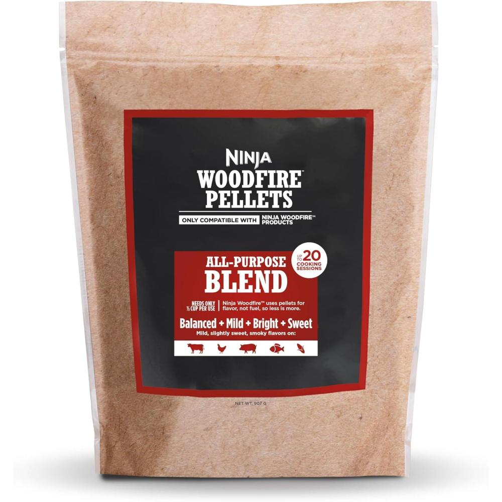 Ninja XSKOP2RL Woodfire Pellets, All Purpose Blend 2-lb Bag, up to 20 Cooking Sessions, 100% Real Wood Pellets, Only Compatible with Ninja Woodfire Grills & Ovens, All Purpose Blend(All Purpose Blend)