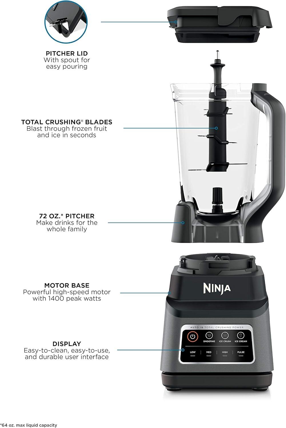 PNAEUT Ninja Professional Plus Blender with Auto-iQ, Black/Grey, 72oz (BN701C)(Black/Grey)